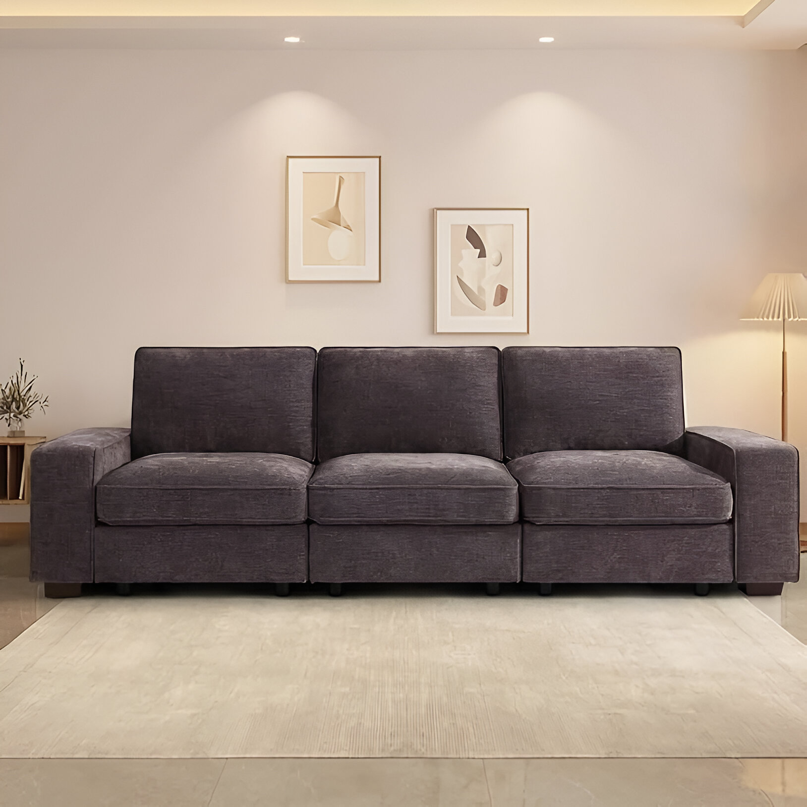 Transform your living room, office, or bedroom with this luxurious 100″ Modular Sofa, designed to bring both style and practicality to any setting. Its spacious 3-seater design and plush chenille fabric make this couch irresistibly comfortable, perfect for unwinding with friends, family, or a good book. Equipped with a deep seat depth of 25 inches and a medium-firm support level, this couch offers a cozy yet supportive lounging experience without sacrificing style.
