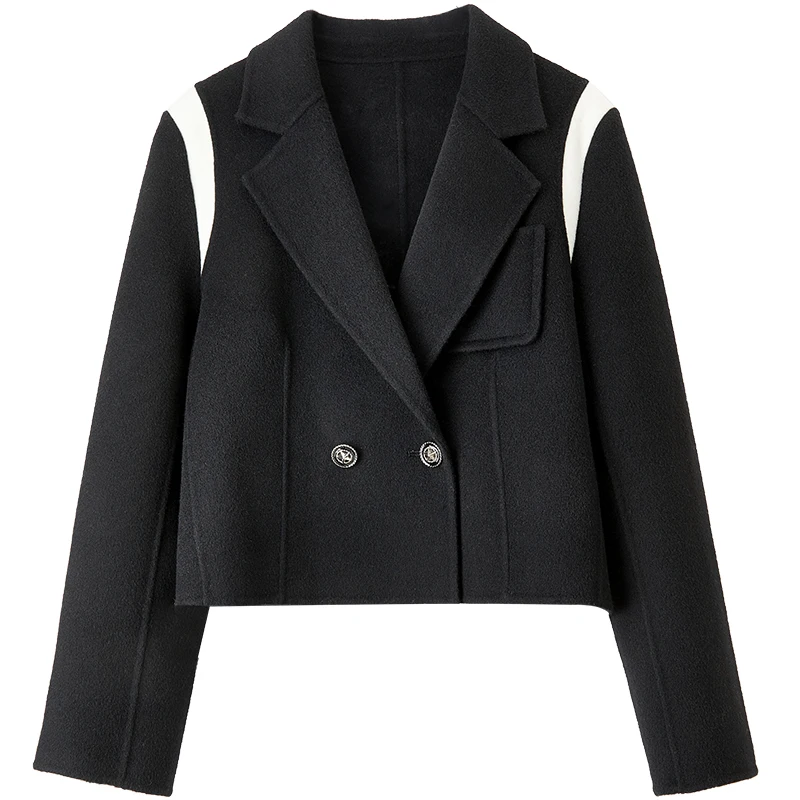Step into the cooler seasons with unmatched sophistication and warmth. This 100% Wool Short Blazer Coat is a must-have for women who appreciate refined fashion without compromising on comfort. Perfect for autumn and winter, this double-breasted woolen jacket is a timeless blend of style and functionality. Its cropped design enhances your silhouette, making it an ideal choice for the office or chic city outings.