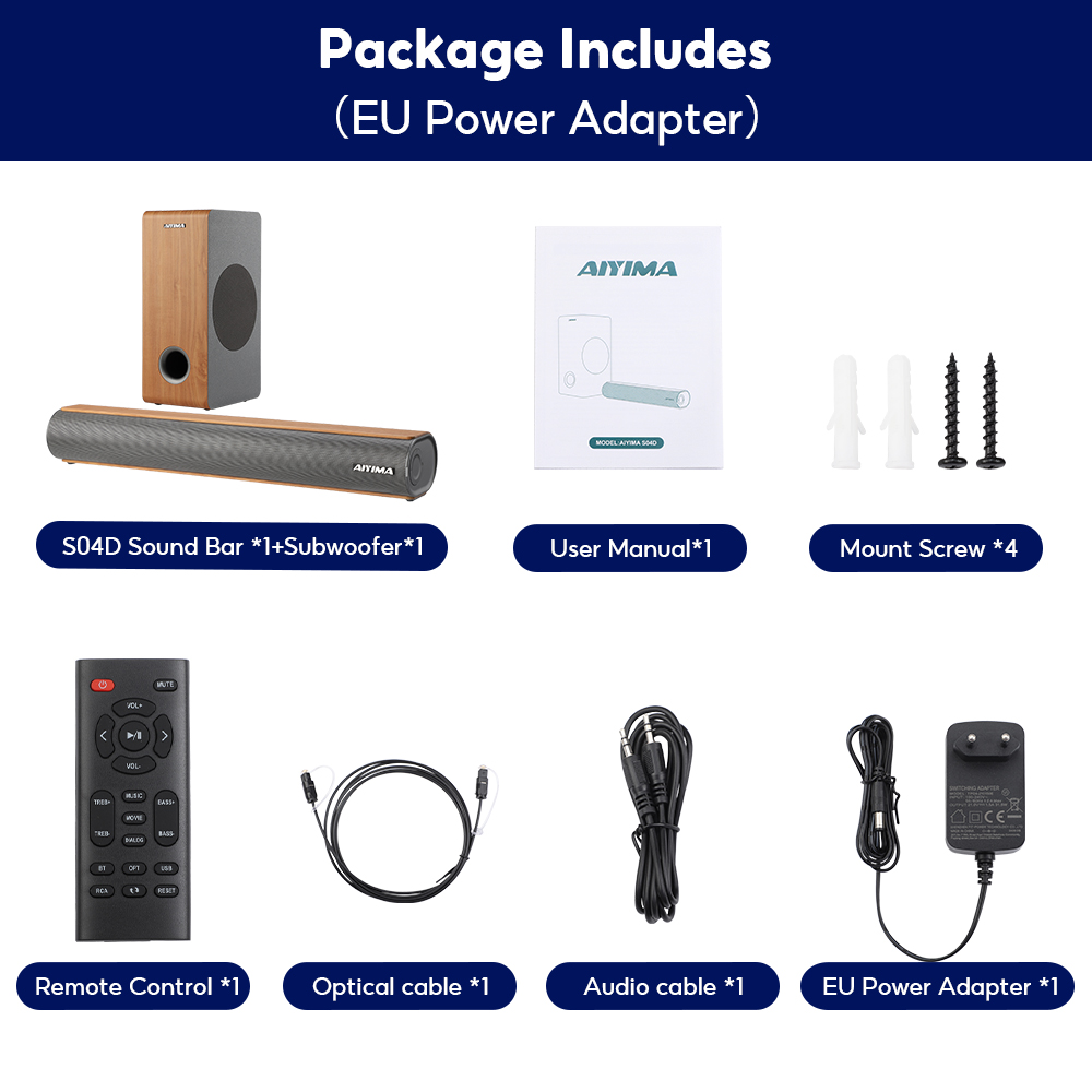 • 2.1 Channel Audio: The combination of the soundbar and wireless subwoofer ensures balanced audio with deep, rich bass.