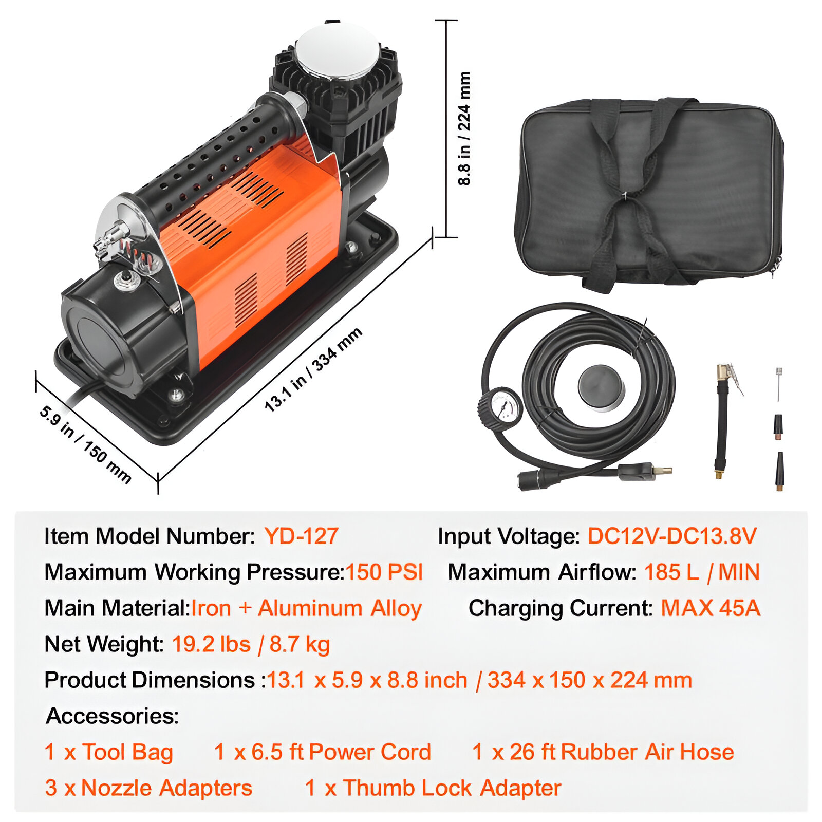 12V Heavy Duty Tire Inflator – 150 PSI Air Compressor for Ford, Toyota, Jeep