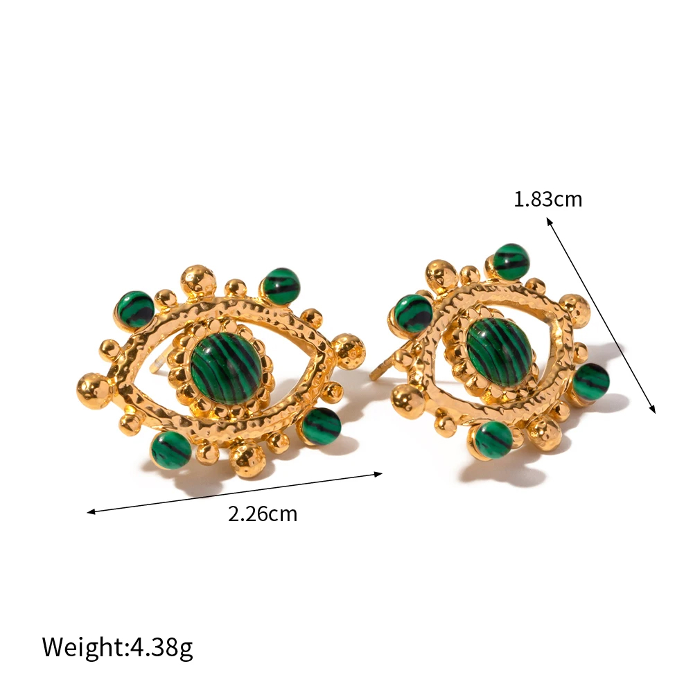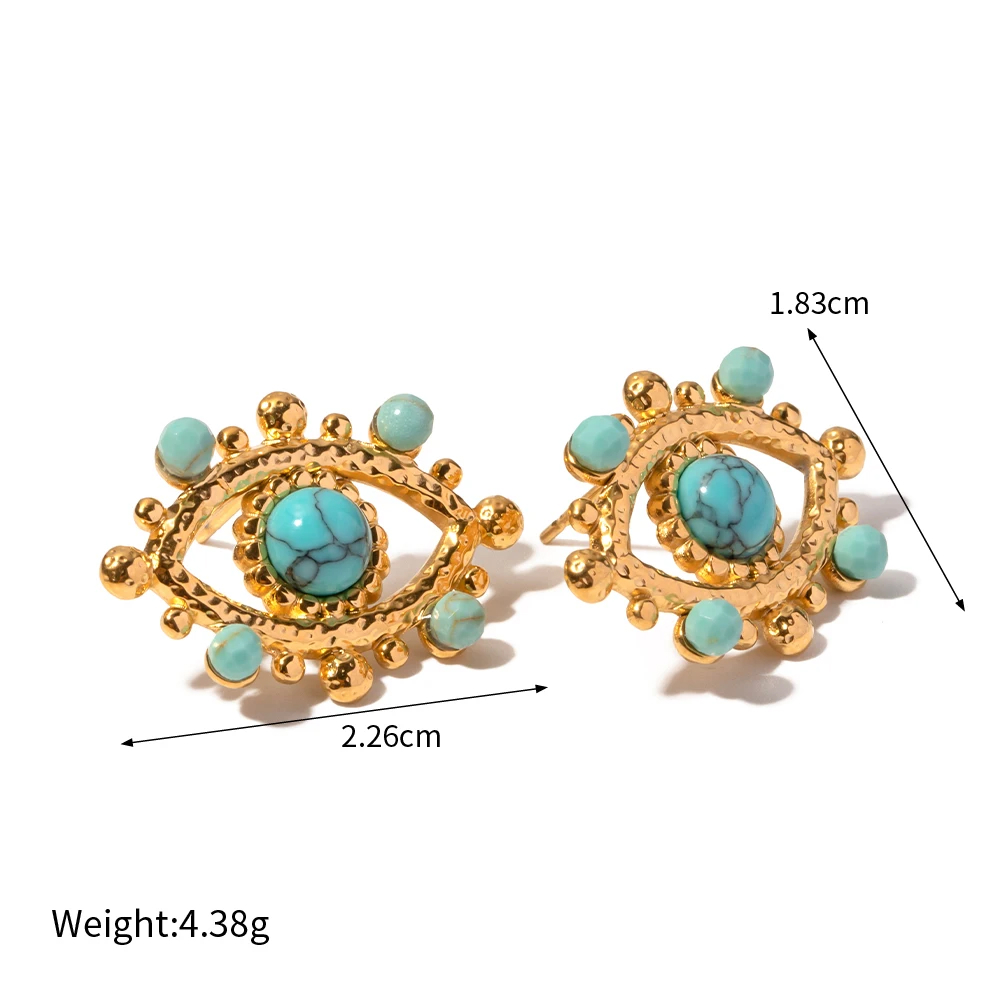 18K Gold-Plated Devil’s Eye Stud Earrings with Natural Stone