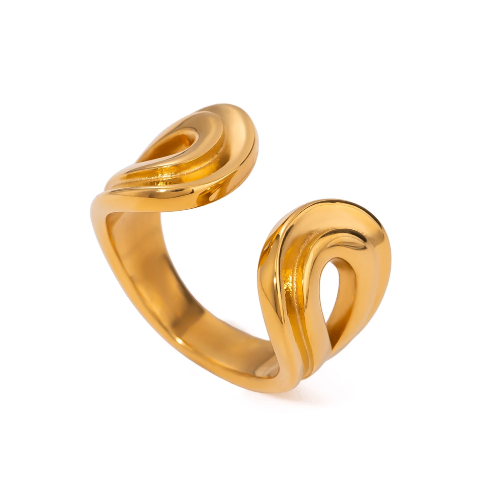 Classic Charm with a Modern Twist: 18K Gold Plated Striped Openwork Open End Ring