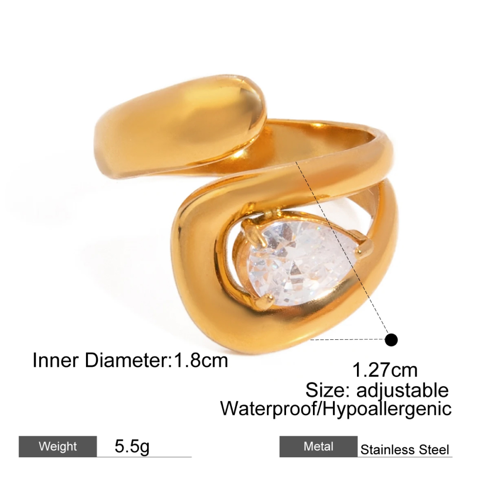 Elegant and Timeless: 18K Gold Plated Water Drop Zircon Opening Ring