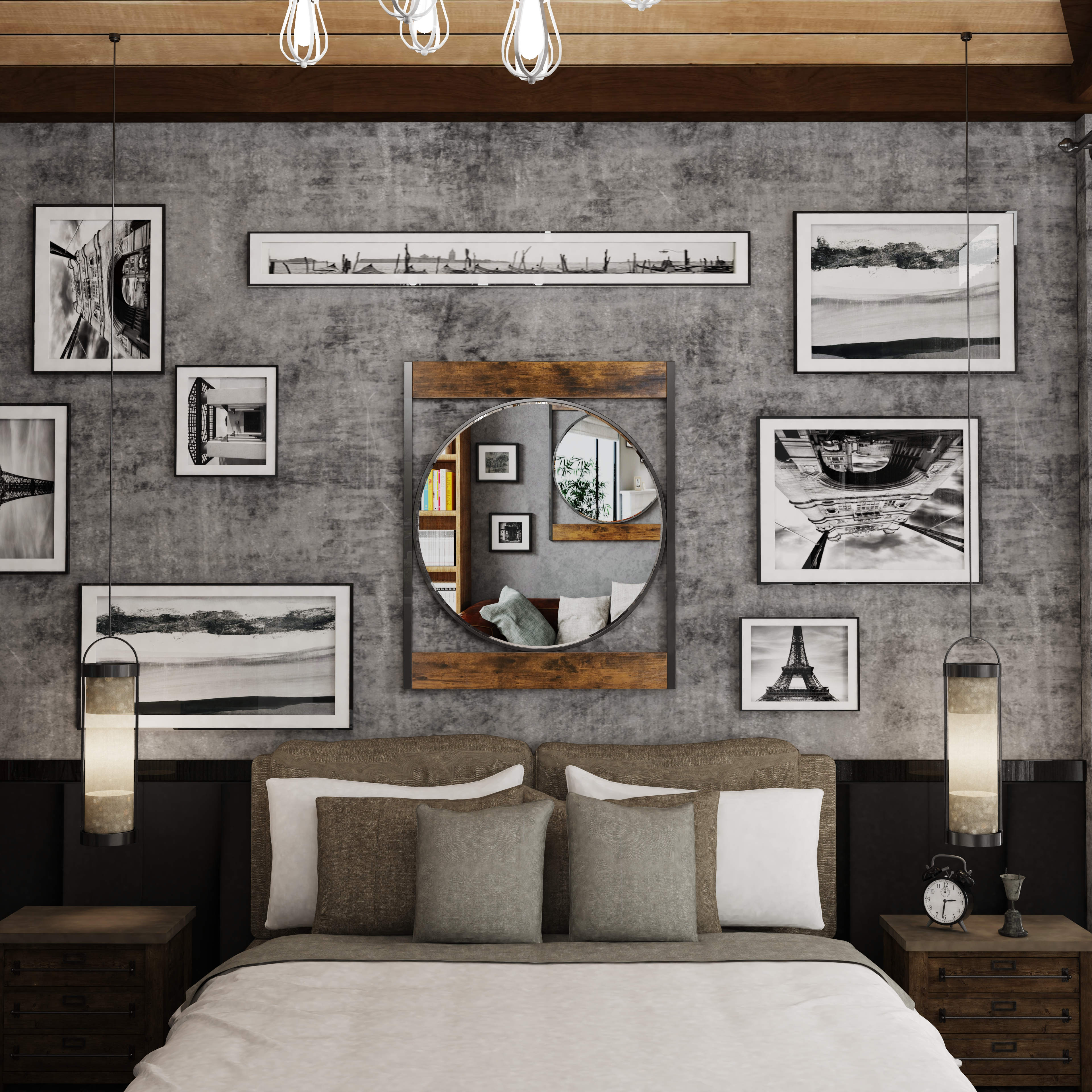 Transform your space with this beautiful 22.4-inch round wall mirror, encased in a stylish square wooden frame that merges rustic charm with timeless elegance. Designed to complement a variety of interior styles, this mirror brings an eye-catching vintage appeal that effortlessly enhances any room, from the living room to the entryway or bathroom. The unique blend of a round mirror and square frame offers a sophisticated, artistic touch that will set your decor apart.