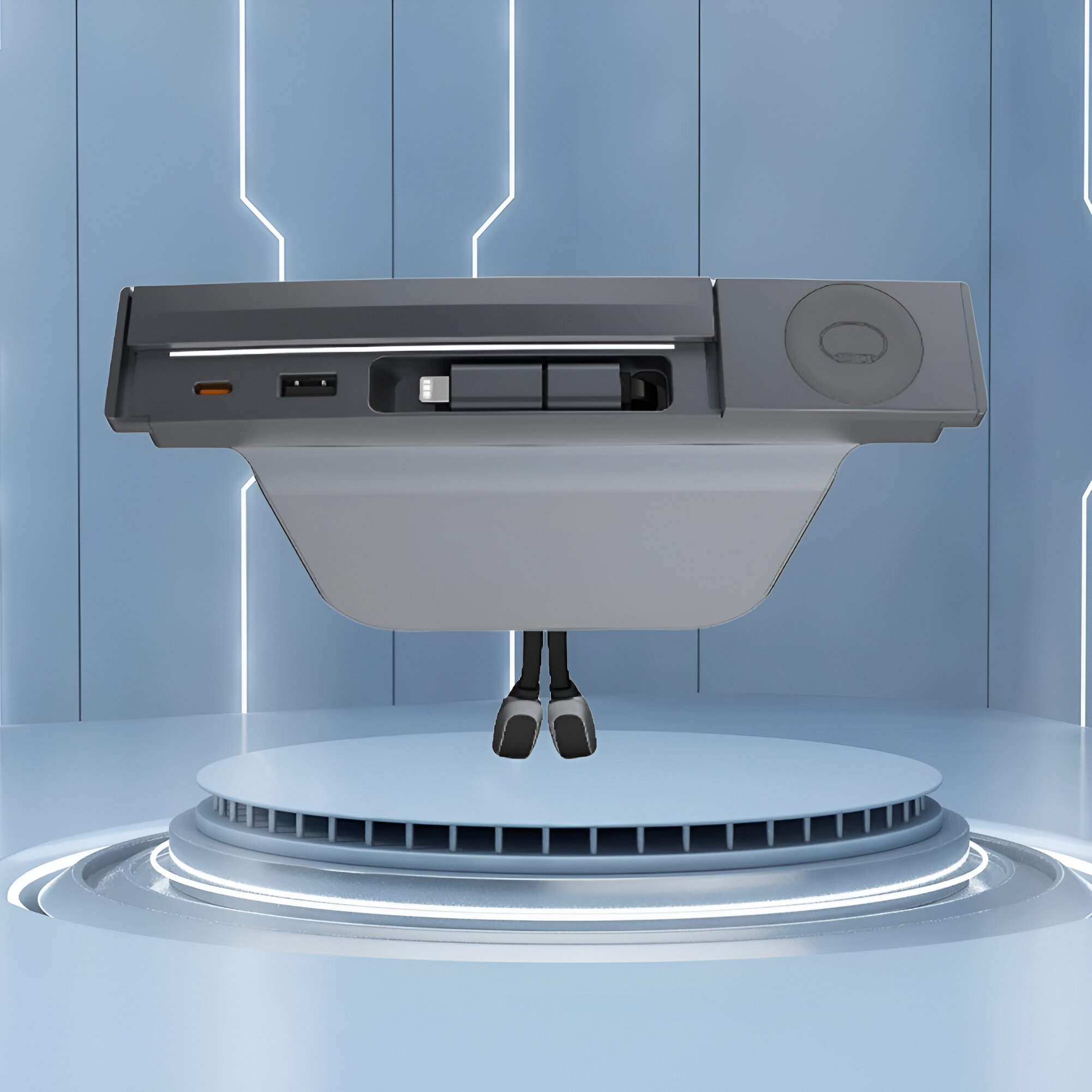Enhance your driving experience with this smart charging station that combines modern technology with sleek design. The 27W 2-Port Wireless Charger with Retractable Cable is designed to seamlessly integrate into your Tesla Model 3 or Model Y, providing fast, safe, and efficient charging for all your devices. Keep your car organized and your devices ready to go with this essential Tesla accessory.