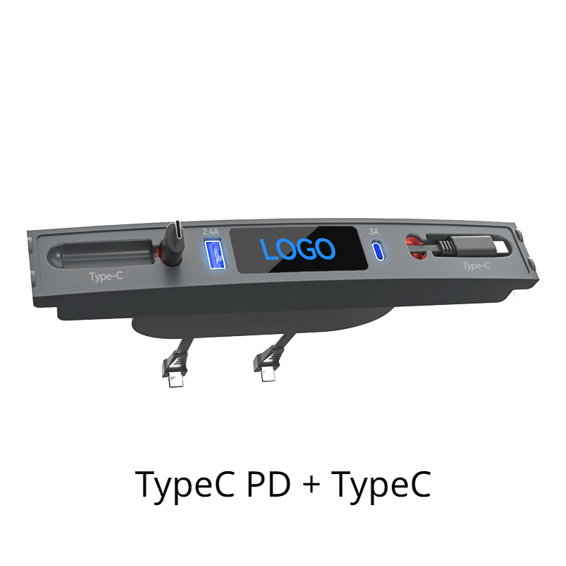 27W PD Fast Charging Hub with LED Display & Retractable Cables for Tesla Model 3/Y