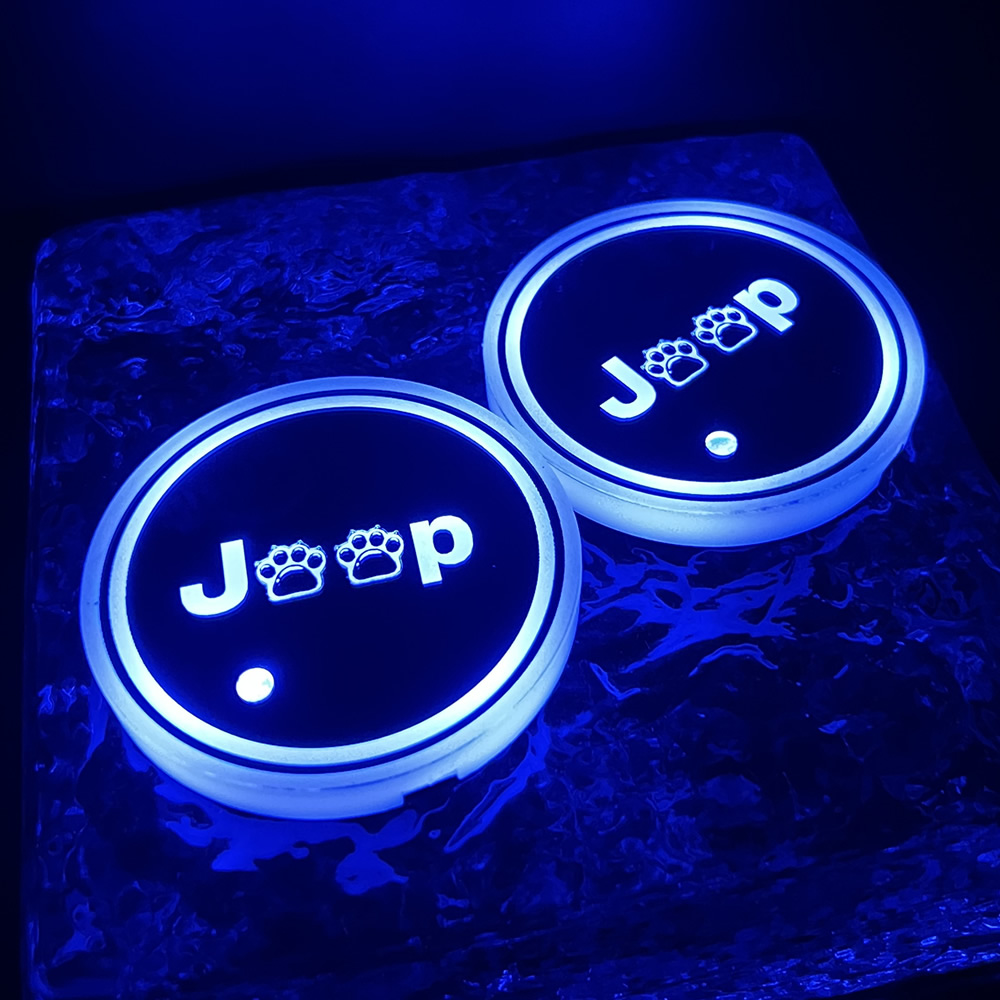 2PCS LED Cup Holder Lights for Car – 7-Color Changing Coasters for Jeep, Ford, Toyota