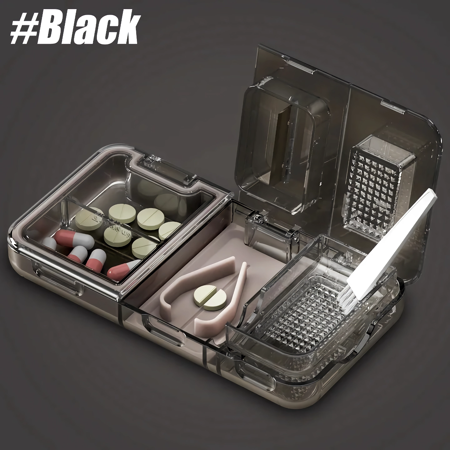 • 3-in-1 Functionality: Cuts, splits, and stores pills, providing ultimate convenience.