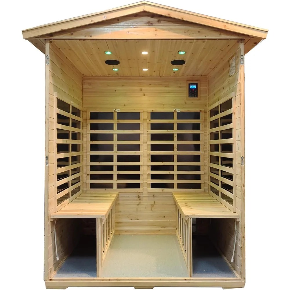 Transform your outdoor space into a sanctuary of health and relaxation with this luxurious 4-person far infrared sauna. Crafted from premium kiln-dried Hemlock wood, this sauna combines elegance with exceptional functionality, creating a spa-like experience in the comfort of your own home. Its thoughtful design and cutting-edge technology are perfect for rejuvenating after a long day or bonding with loved ones.