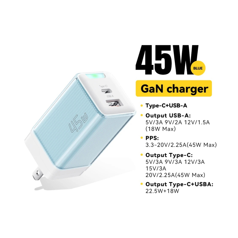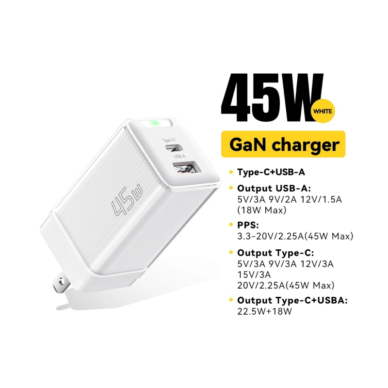 Invest in this 45W GaN USB-C fast charger to experience unparalleled efficiency and convenience. Designed with Samsung users in mind, it’s the ultimate solution for powering up your devices quickly and safely. Order now and enjoy the perfect combination of speed, safety, and portability!