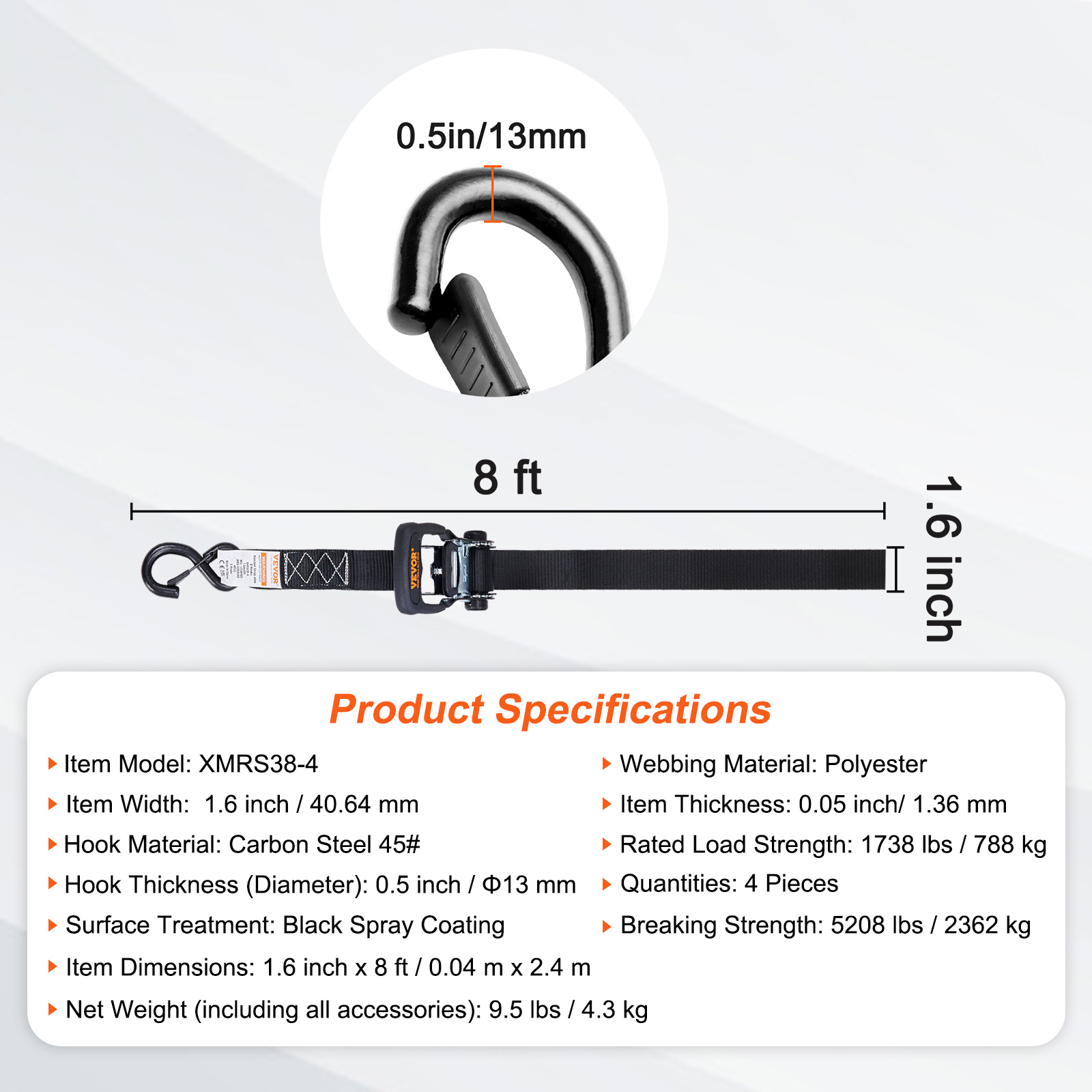 The VEVOR Ratchet Strap Set comes complete with: