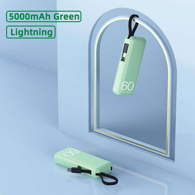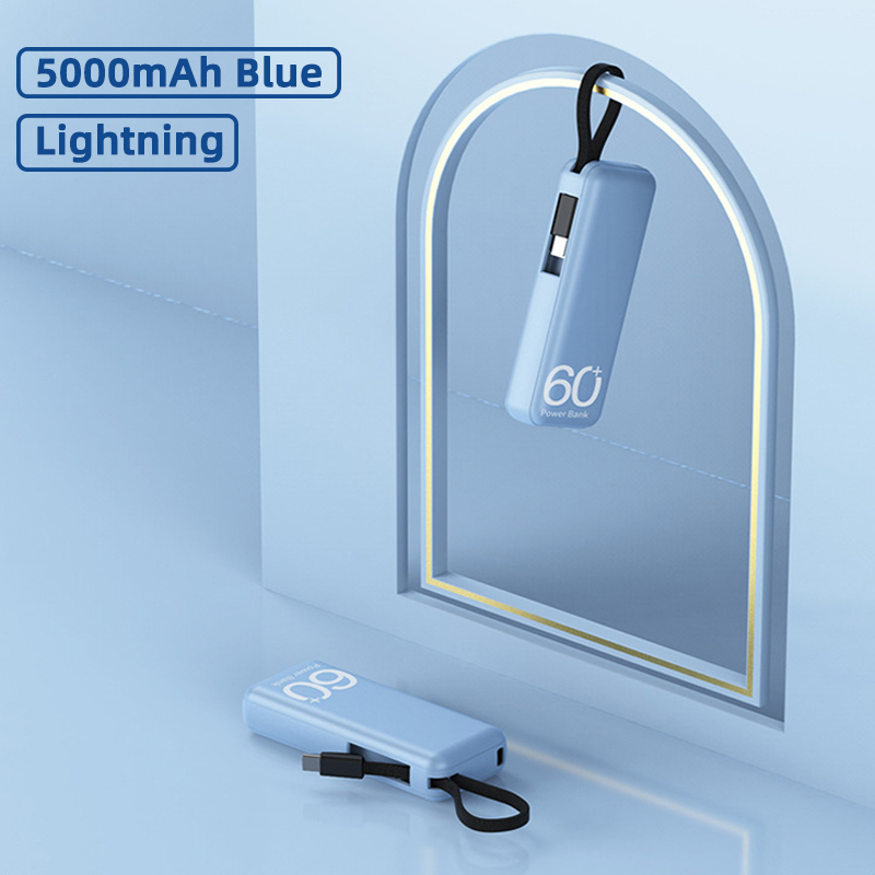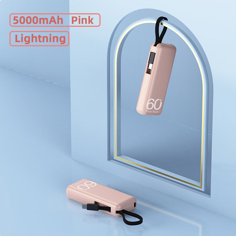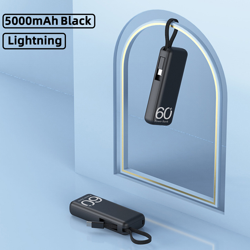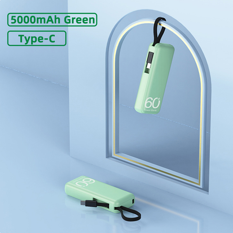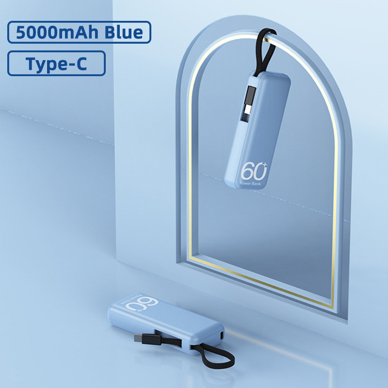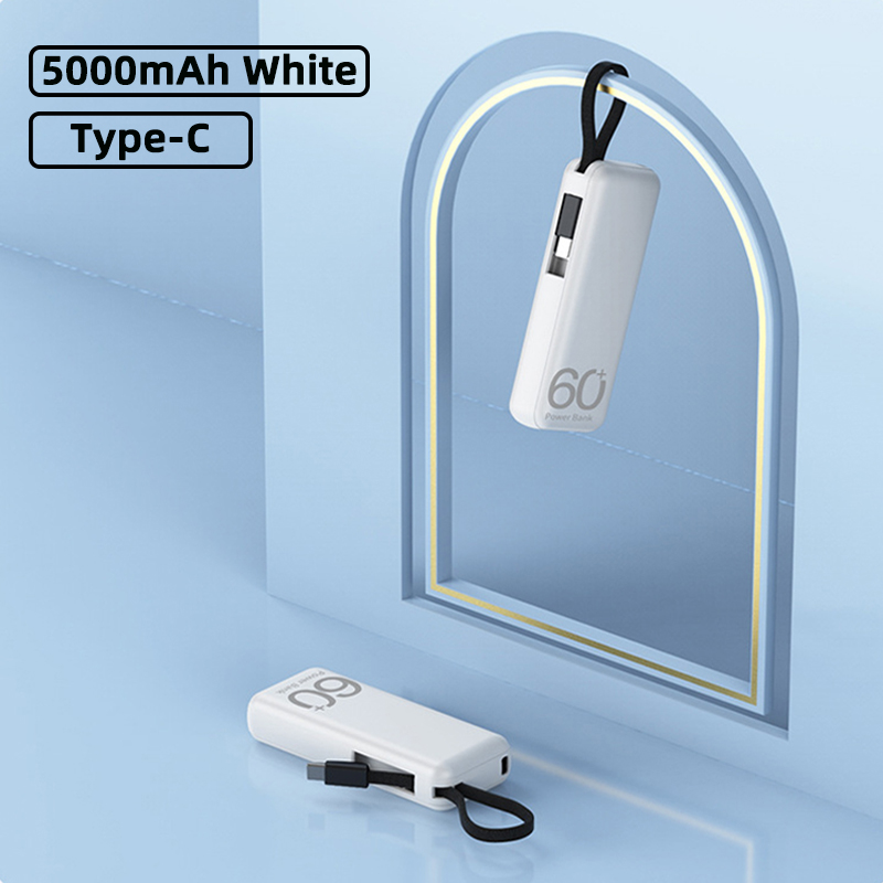 5000mAh Mini Power Bank with Built-In Type-C Cable for Samsung & Smartphones