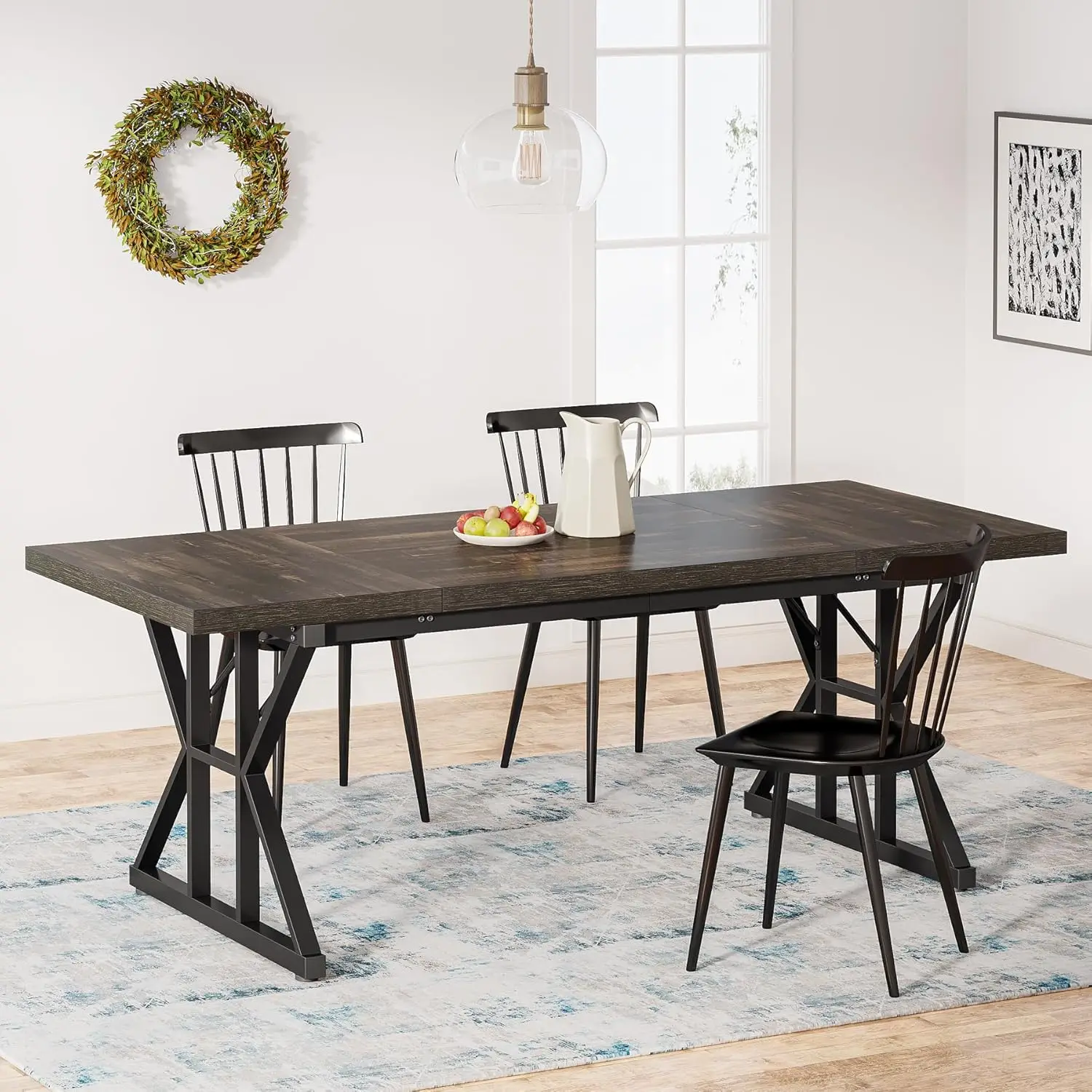 70.8-Inch Rectangular Dining Table for 6, Farmhouse Style with Metal Legs