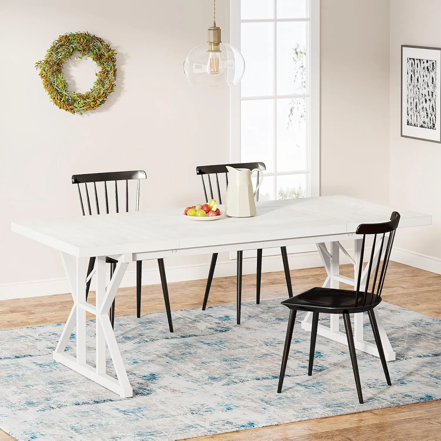Transform your dining area into a stylish and welcoming space with this 70.8-inch rectangular dining table, designed to comfortably seat six people. With its farmhouse-inspired charm, this table combines rustic warmth with clean modern lines to suit any décor. The vintage brown wood top paired with the white trestle-style base creates a stunning contrast, making it a centerpiece for your kitchen, dining room, or living area.