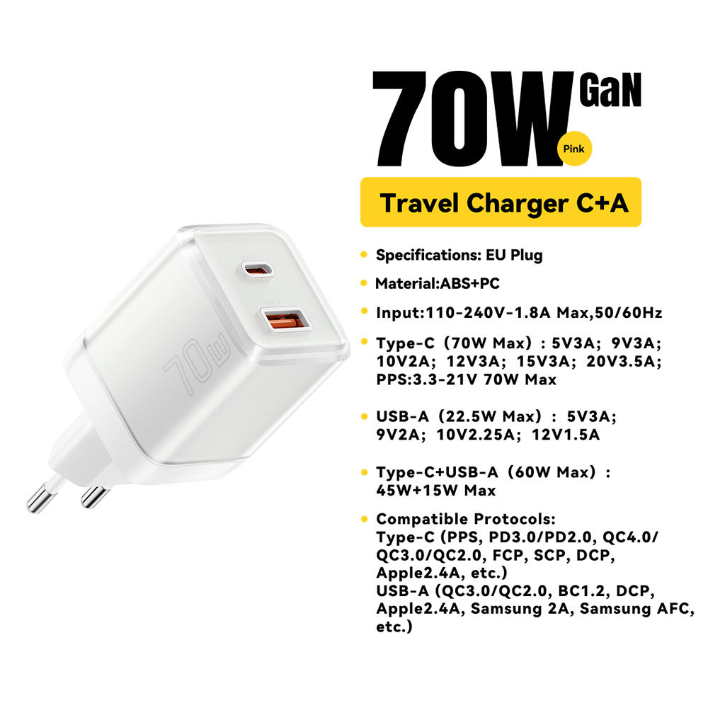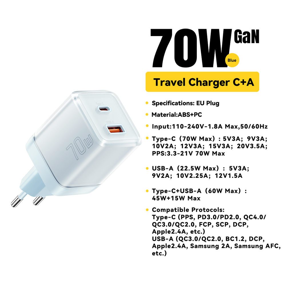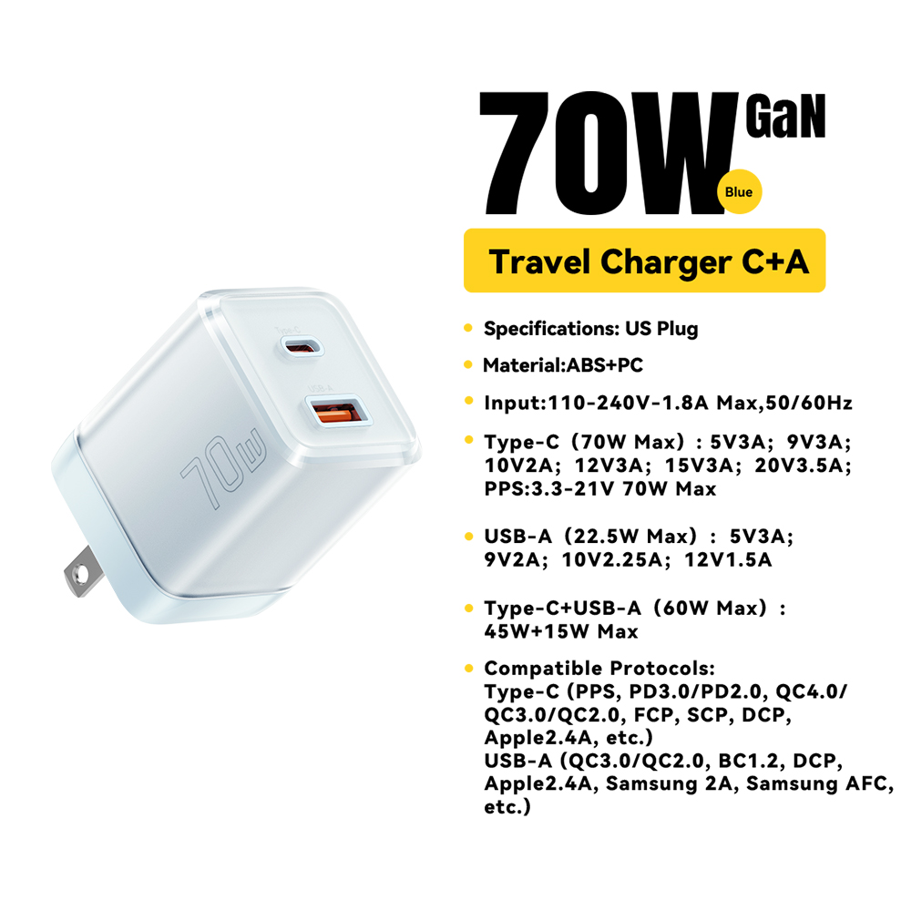 Whether you’re heading out for a business trip, need a reliable charging solution at home, or are looking for a quick boost during a busy day, this 70W GaN charger is perfect for every scenario. Its universal compatibility and compact design ensure you’re never without power, no matter where you are.