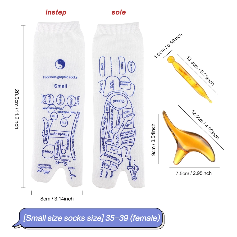 Acupuncture point socks are more than just regular socks. Each pair is printed with a detailed map of foot acupuncture points, making it easy to target and massage the right areas. The included massage stick allows for deeper pressure, while the triangular massage board is perfect for larger areas. This comprehensive set is ideal for anyone looking to incorporate reflexology and acupuncture into their daily wellness routine.