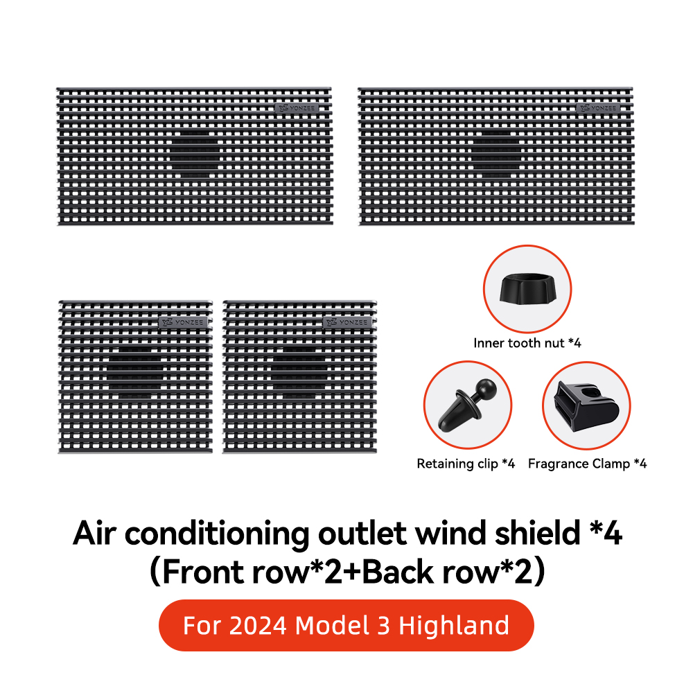 Enhance your driving experience with the Air Vent Outlet Baffle Cover for Tesla Model Y, 3, and Highland. Designed to efficiently redirect airflow, this accessory ensures a comfortable cabin environment by preventing direct airflow from AC vents. Say goodbye to the discomfort of harsh, direct blasts of air and enjoy a more even and pleasant temperature inside your vehicle. This practical yet stylish accessory provides both functionality and improved comfort during your rides.