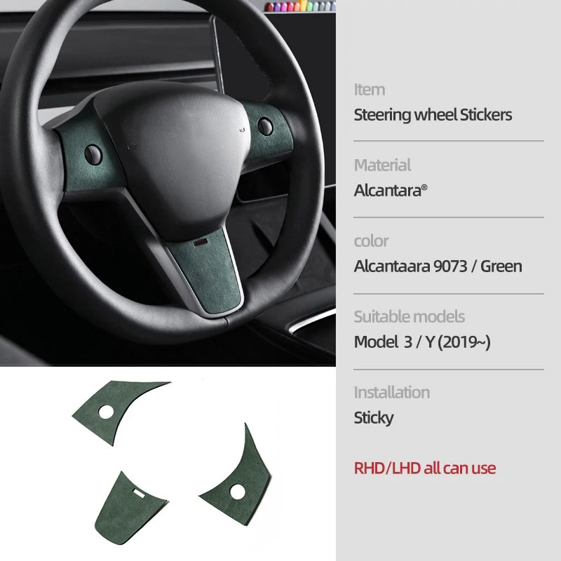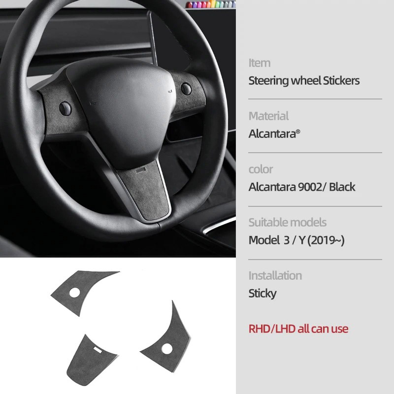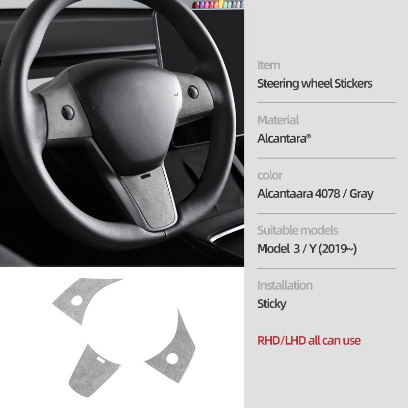 Transform your Tesla Model 3 or Model Y’s interior with the sleek and stylish Alcantara Steering Wheel Buttons & Panel Trim Stickers. These high-quality, custom-fit accessories are designed to add a sophisticated, luxurious touch to your vehicle’s interior while enhancing its overall aesthetic. Crafted from premium Alcantara material, these trim stickers not only offer a refined visual appeal but also provide a satisfying tactile feel. Perfect for Tesla owners who want to bring their car’s interior to the next level of comfort and style.
