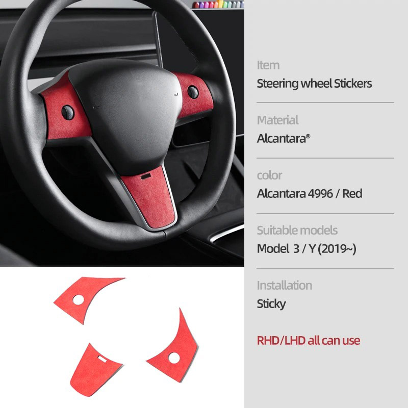 Alcantara Steering Wheel Buttons & Panel Trim Stickers for Tesla Model 3 & Y