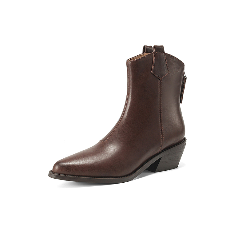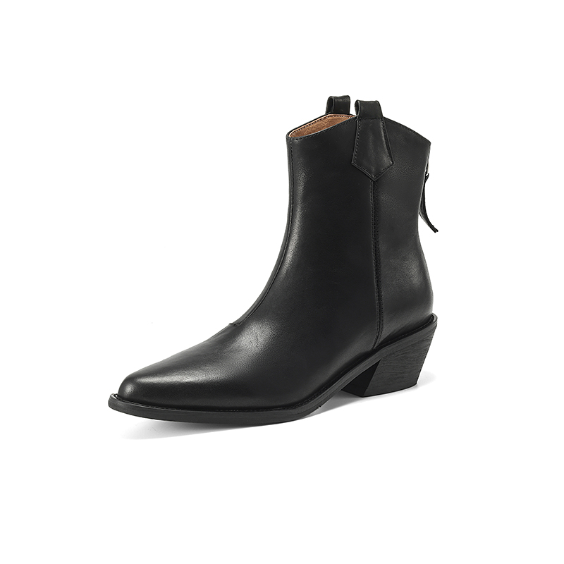 Crafted from premium genuine cow leather, these ankle boots offer durability, flexibility, and a sleek, high-quality finish that only gets better with time. Lined with soft short plush material, your feet will stay warm and cozy, even on the chilliest winter days. With a 5cm square heel, these boots give you the perfect lift without compromising on comfort, making them an ideal option for all-day wear. The pointed toe design adds a sophisticated edge, while the convenient zipper closure ensures easy wear and a secure fit.