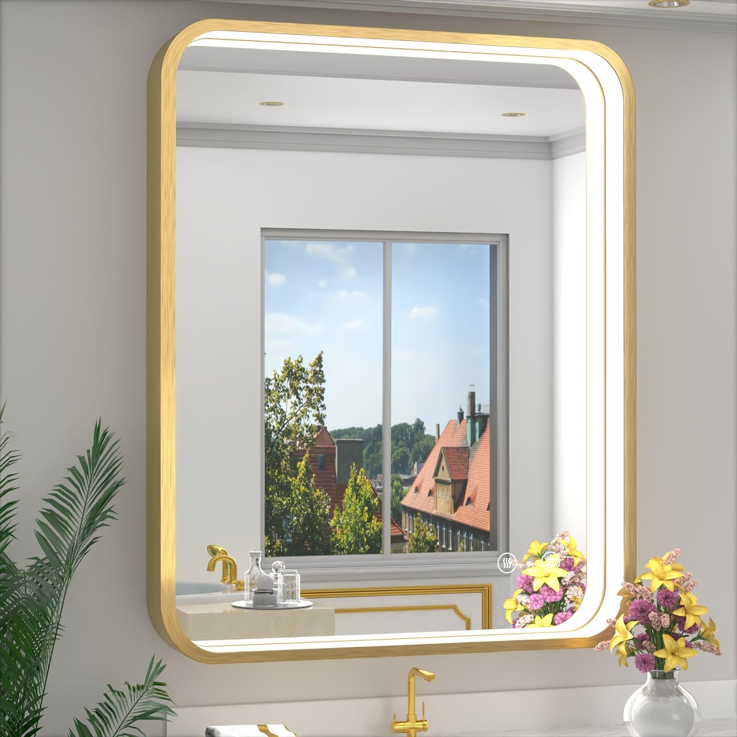 got this mirror for my bathroom and it's amazing the LED lights are super bright and the anti-fog feature is a lifesaver i don't have to wait for the steam to clear anymore the adjustable lighting lets me set the mood perfectly whether it's bright for makeup application or dim for a relaxing bath the metal frame is sleek and modern fits perfectly with my decor can't believe i went so long without it totally worth the investment 👍