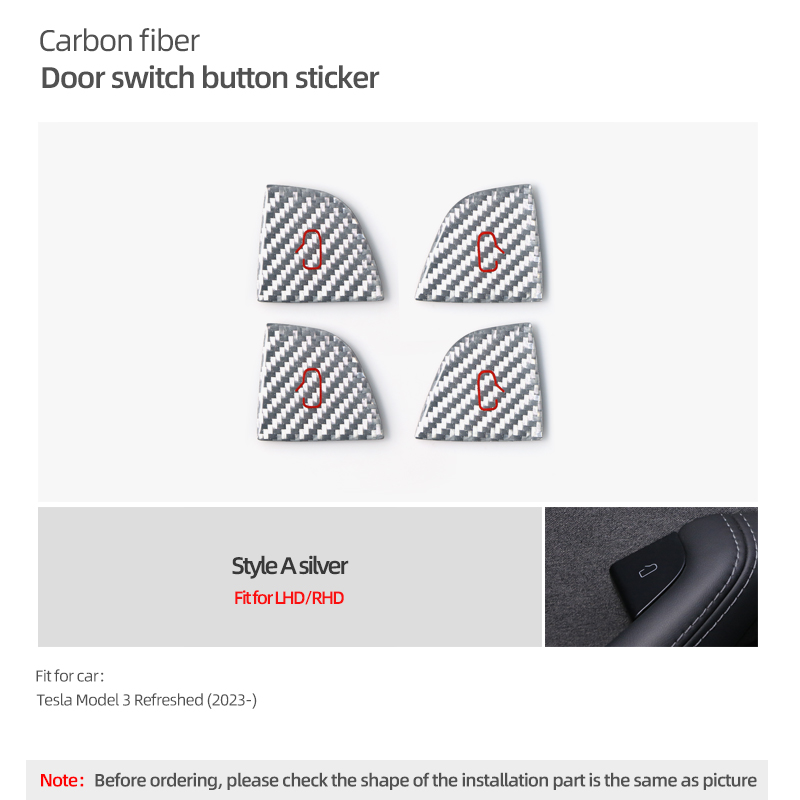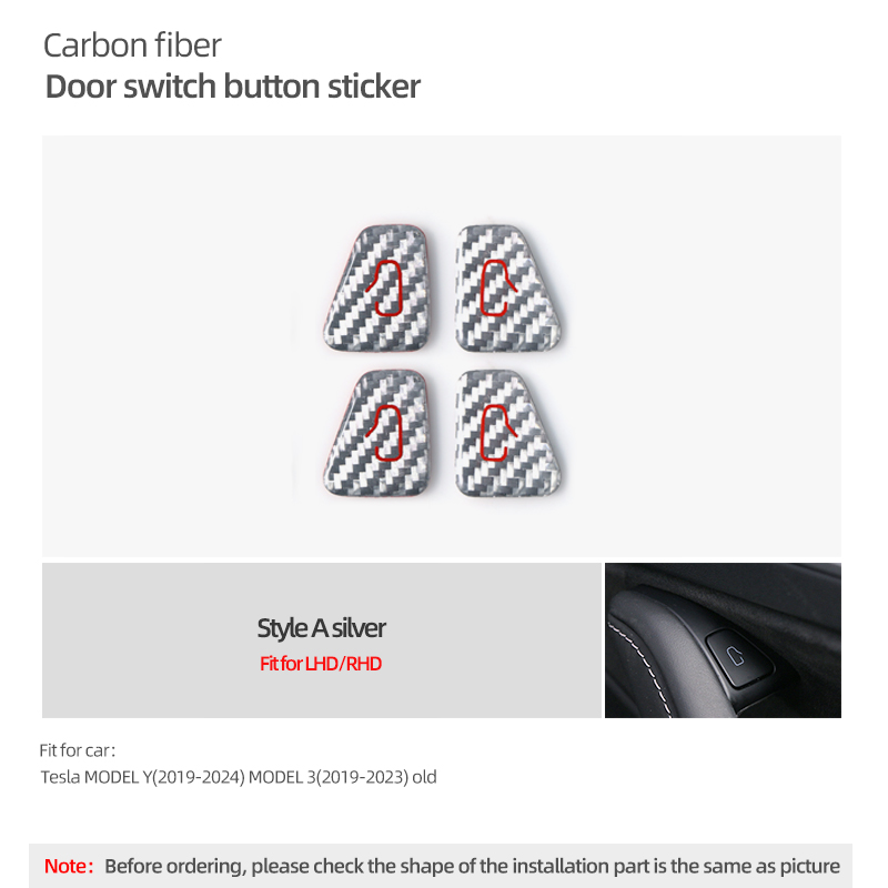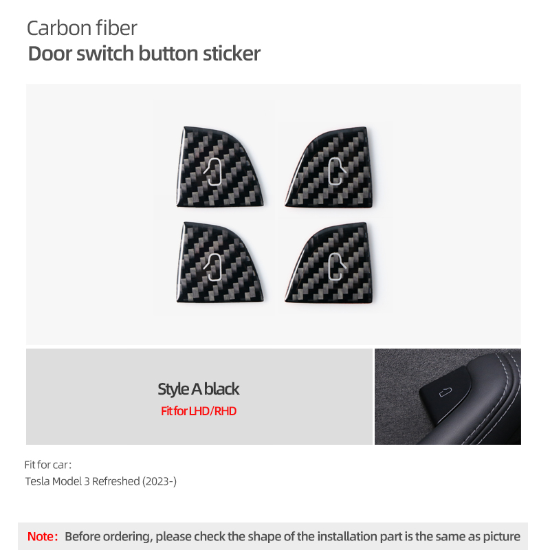 Carbon Fiber Door Switch Lock Button Trim for Tesla Model 3/Y – Interior Accessories