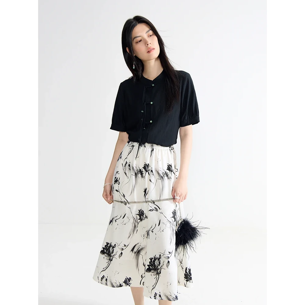 Chinese-Inspired Ink Print Summer Skirt for Women