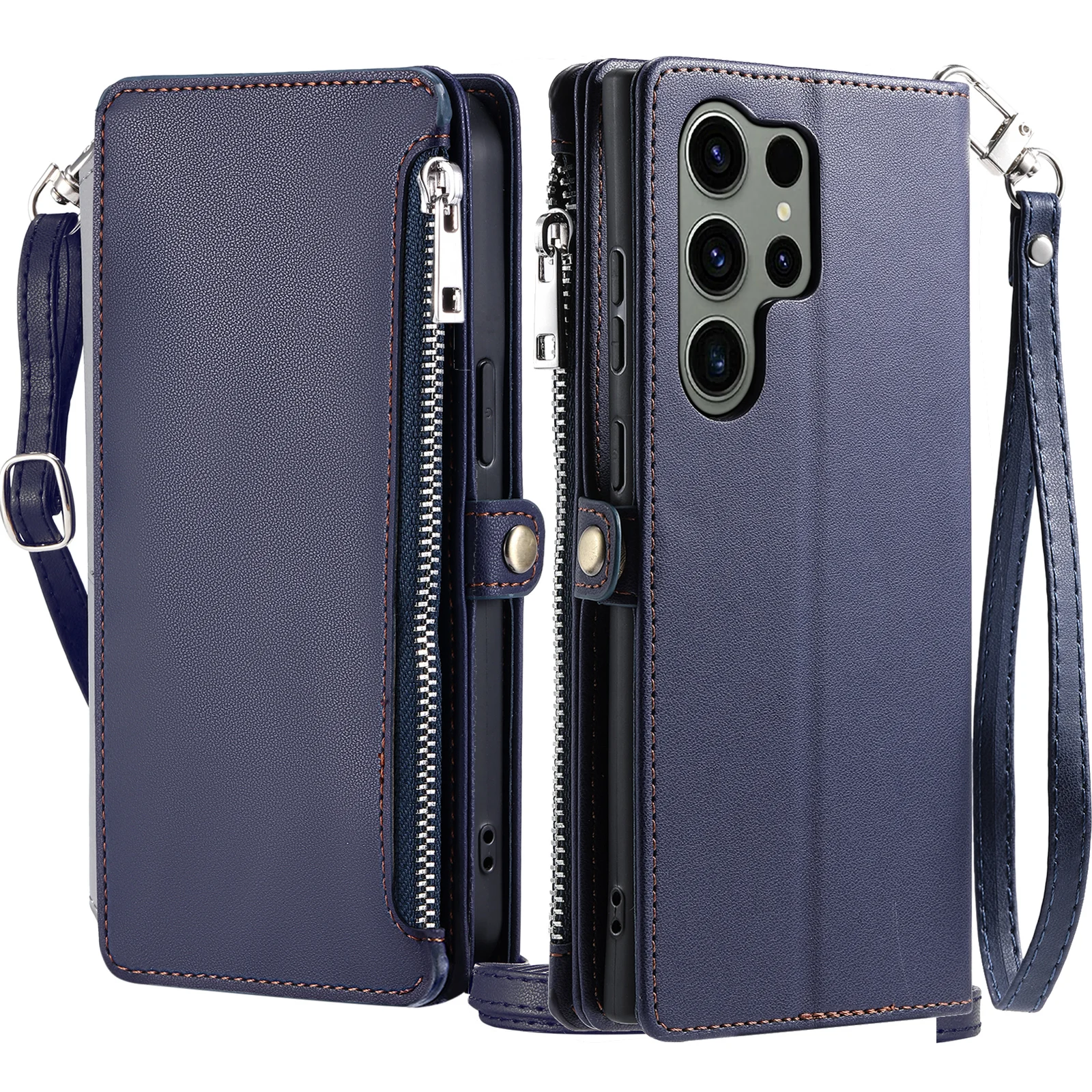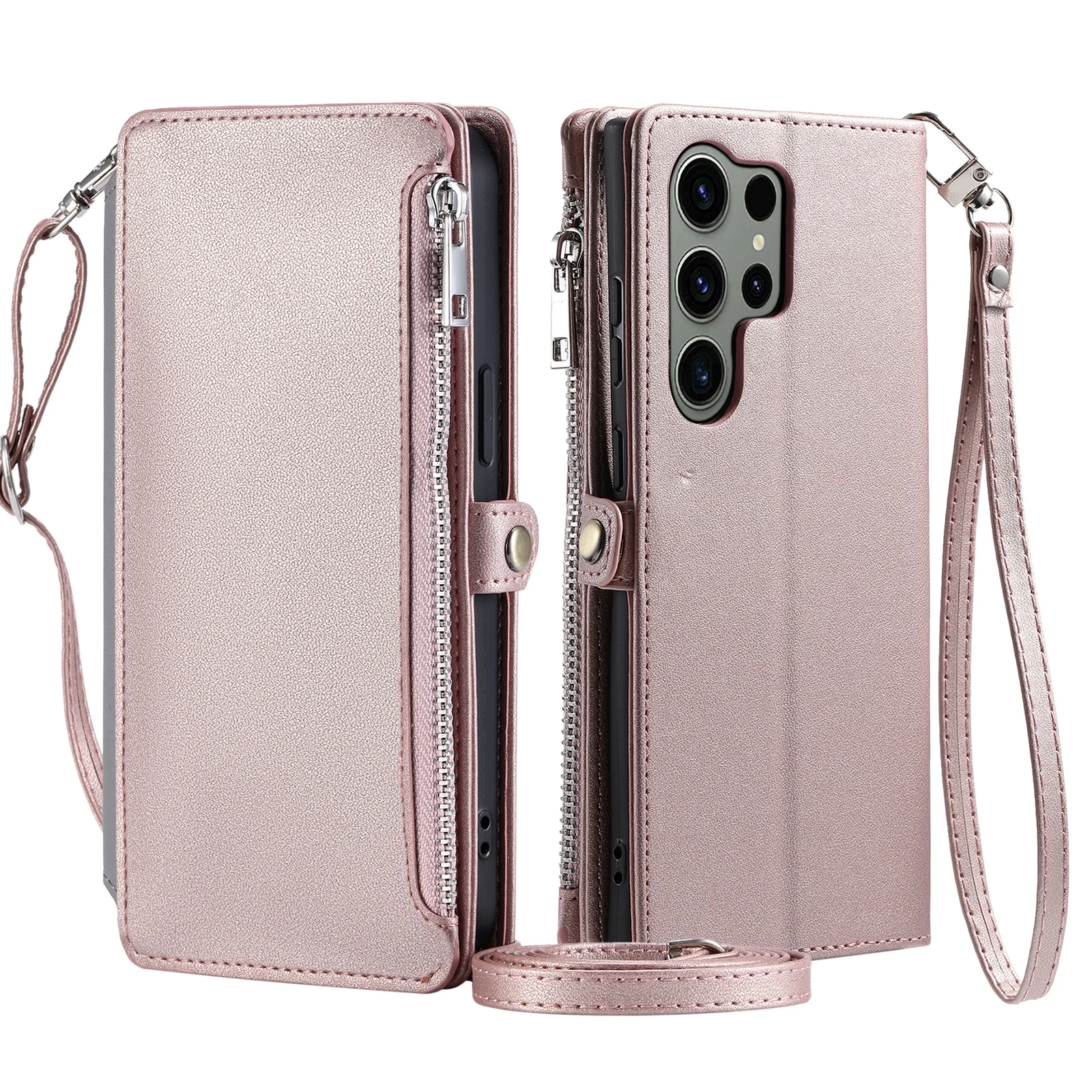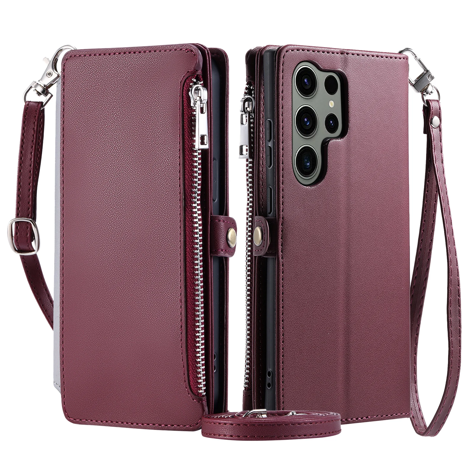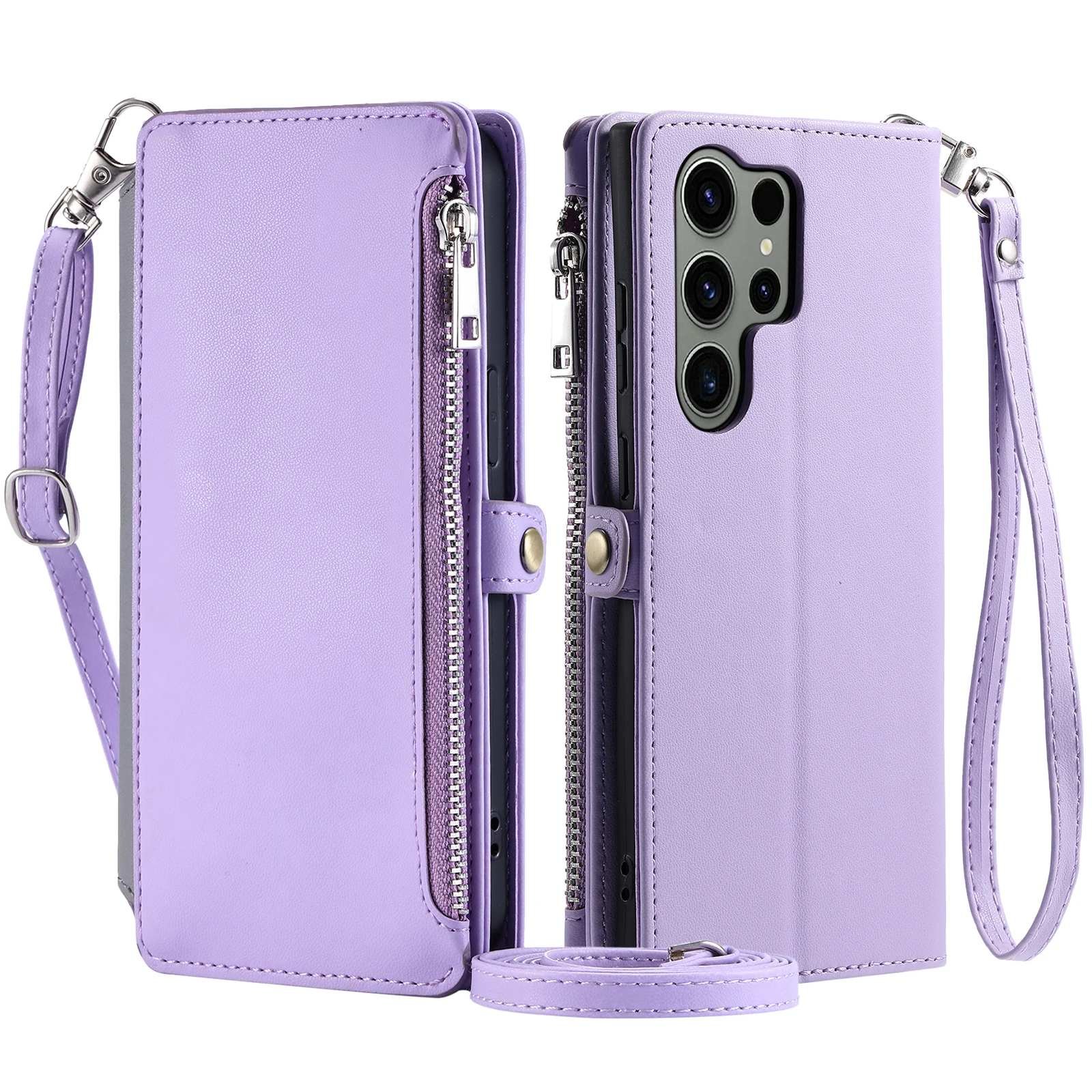 Crossbody Zipper Wallet Case with Card Slot for Samsung Galaxy S24 Ultra, S23 Plus, S22, and More