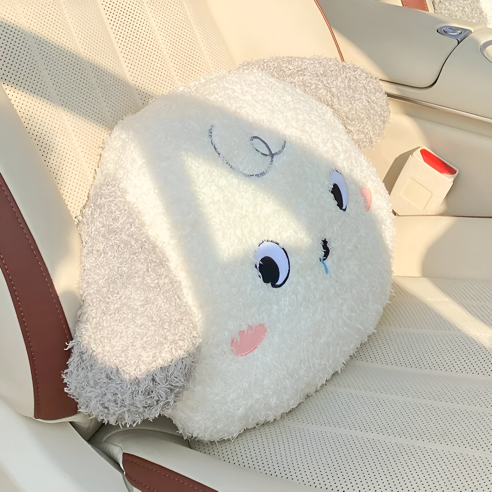 Cute Cartoon Dog Plush Car Neck & Lumbar Pillow for Toyota, Honda, Ford