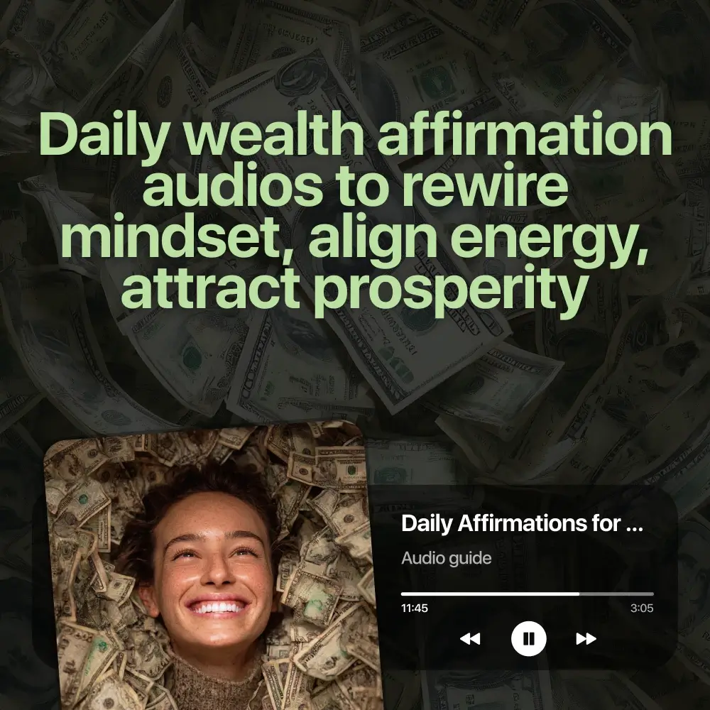 Anyone ready to strengthen a positive money mindset with gentle, consistent practice. People who want quick, uplifting audios for morning routines, commutes, or evening wind-downs. Perfect for those who prefer supportive, judgment-free language and practical affirmations they can feel right away.