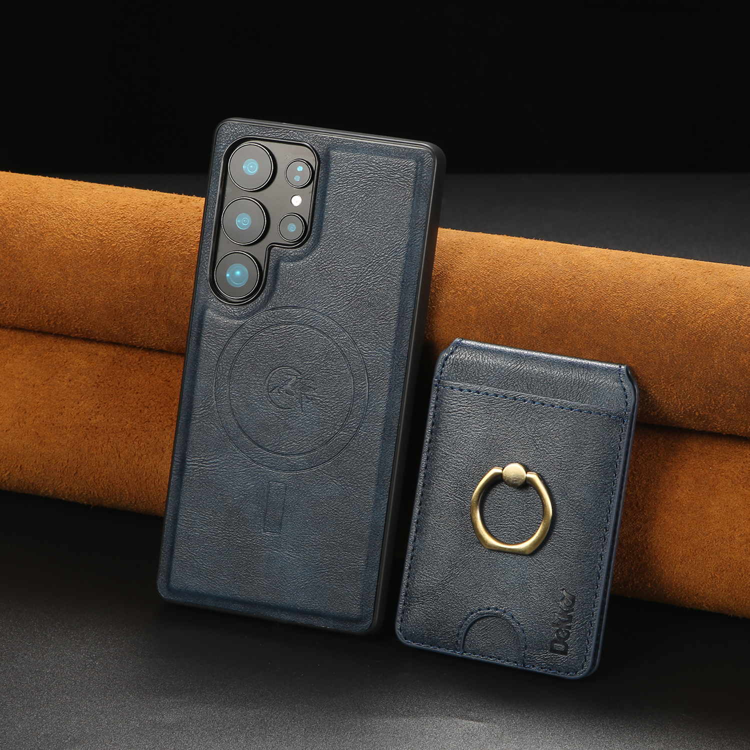 Detachable Magnetic Wallet Case with Card Slot & Ring Holder for Samsung Galaxy