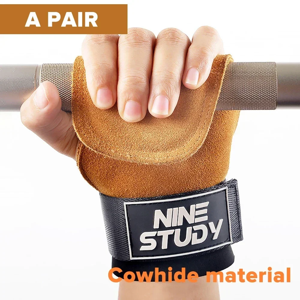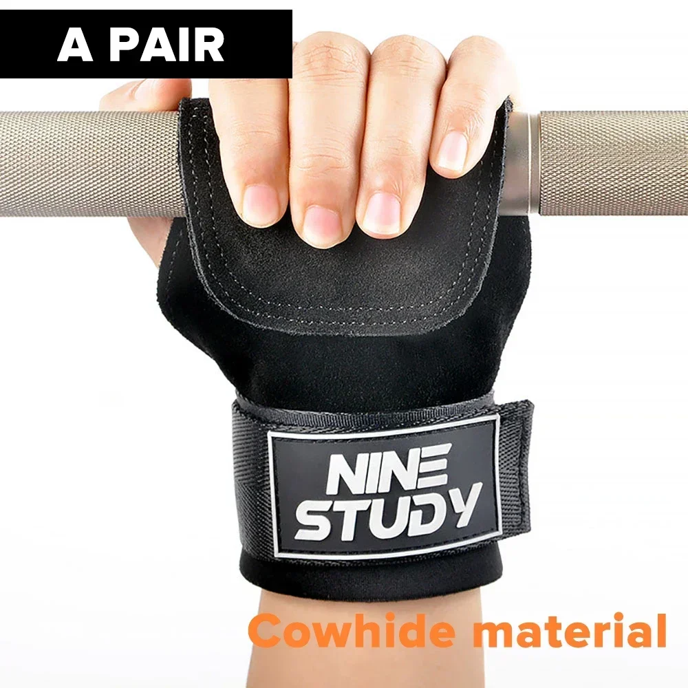 Durable Leather Gym Gloves Grips with Anti-Slip Weightlifting Pads