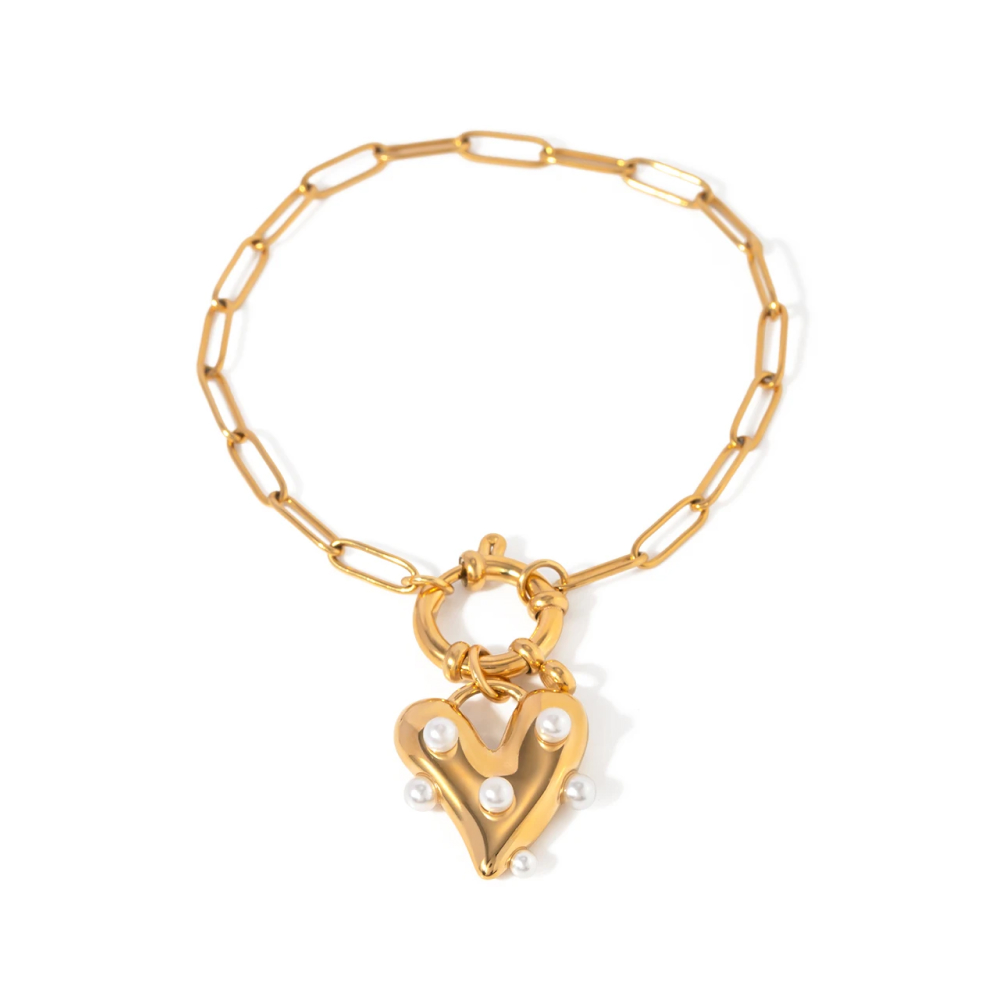 Elegant 18K Gold Plated Love Heart Pearl Pendant Bracelet