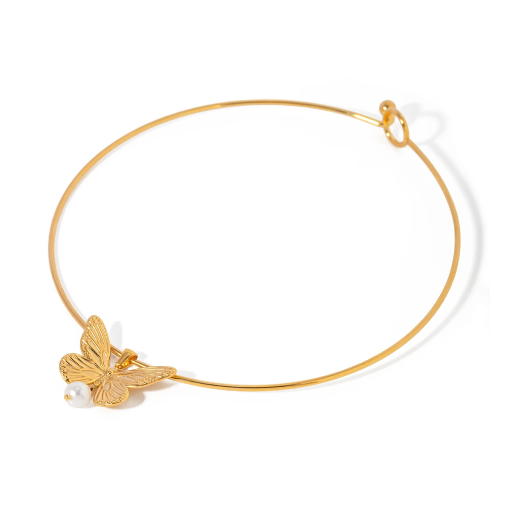 Elegant 18K PVD Plated Butterfly Pearl Pendant Choker Necklace