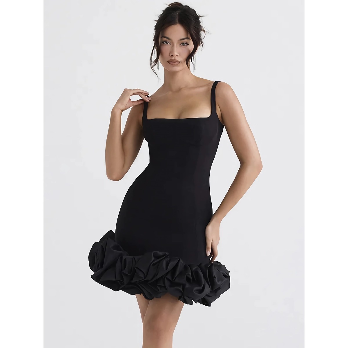 Step into the spotlight with confidence and allure in our Elegant Black Spaghetti Strap Mini Dress. Perfectly designed for club nights, parties, or any special occasion, this dress combines elegance with a touch of sensuality, ensuring you look and feel fabulous all night long.