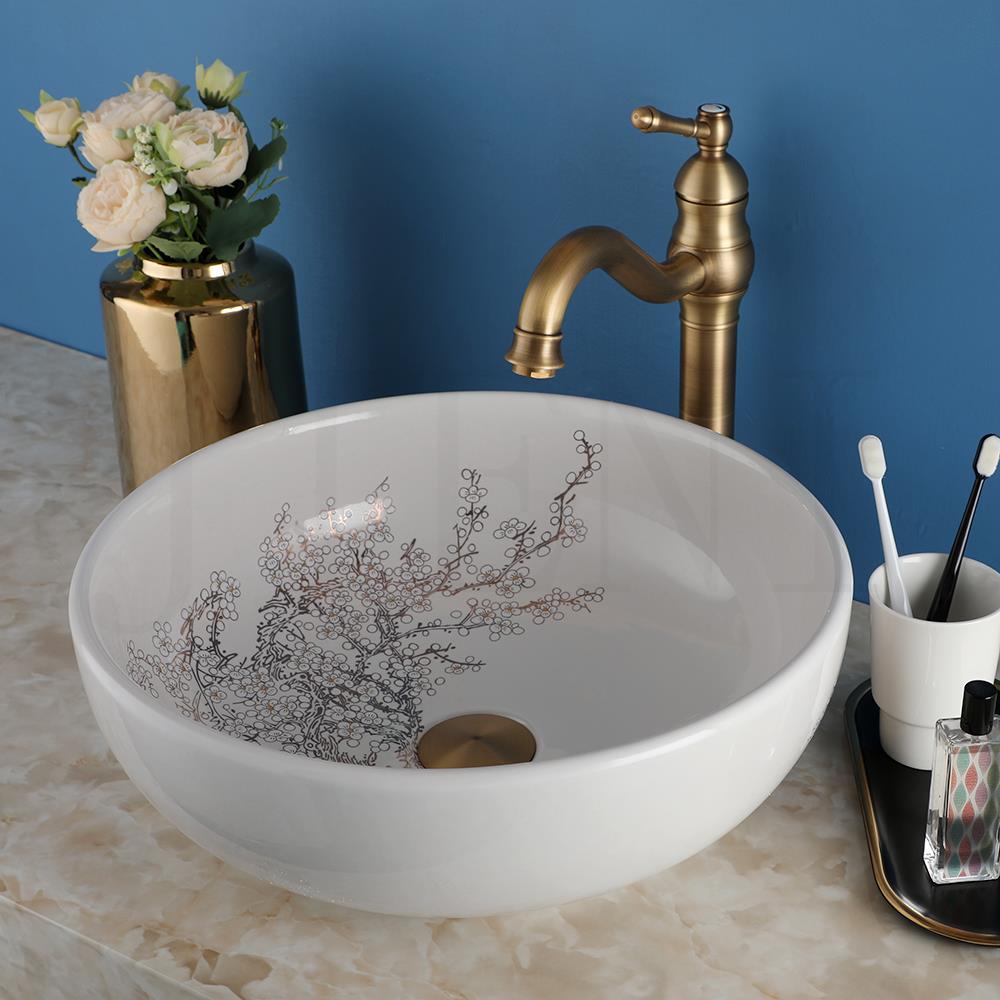 This Round Ceramic Bathroom Basin Set with its artful floral design and luxurious faucet options is the ideal choice for homeowners looking to add a distinctive, high-end touch to their bathroom. Enhance your space with this elegant and functional centerpiece and enjoy a blend of quality, style, and convenience that truly transforms your bathroom experience.