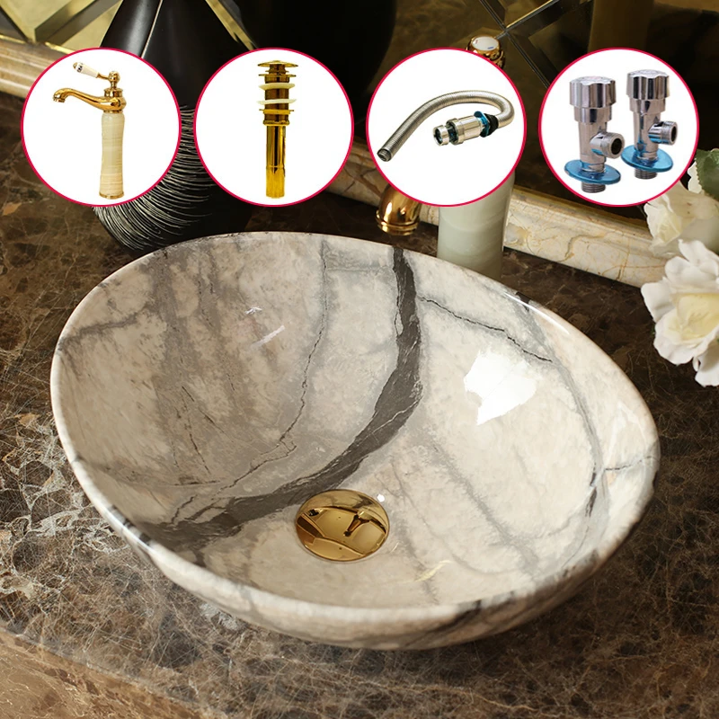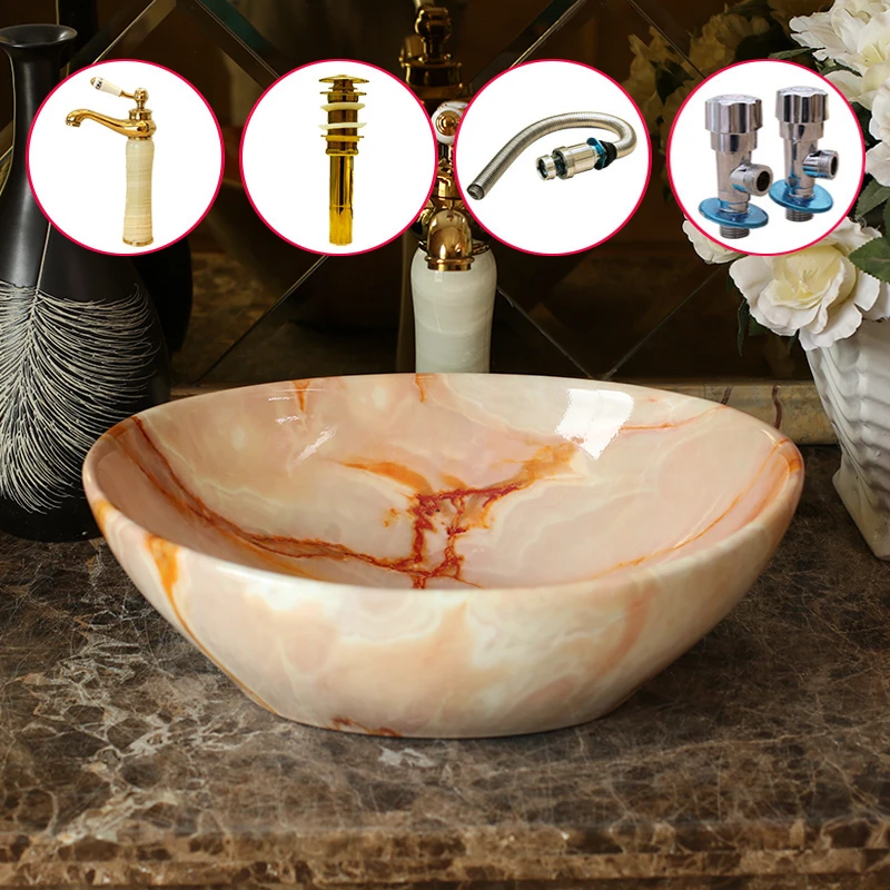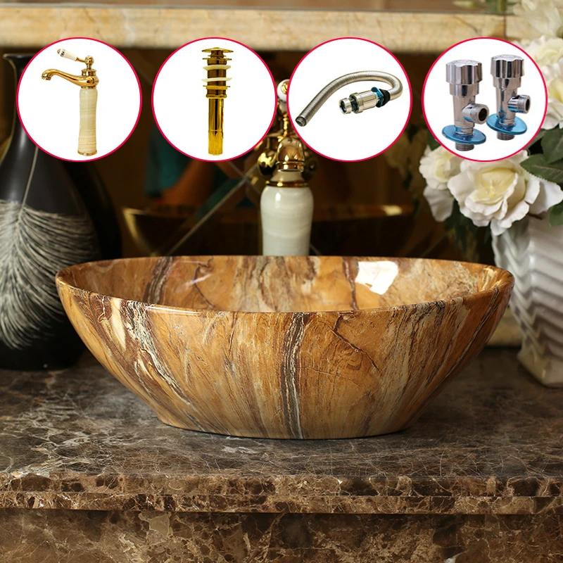 Bring a touch of timeless European artistry to your bathroom with this Oval Ceramic Marble Wash Basin. This stunning countertop sink bowl blends classic design with modern functionality, making it a centerpiece in any bathroom or wash area. Hand-painted with meticulous craftsmanship, each basin is a unique work of art that combines the sophistication of marble texture with the durability of high-quality ceramic. Ideal for contemporary and classic interiors alike, this wash basin is the perfect way to enhance your space with luxury and elegance.