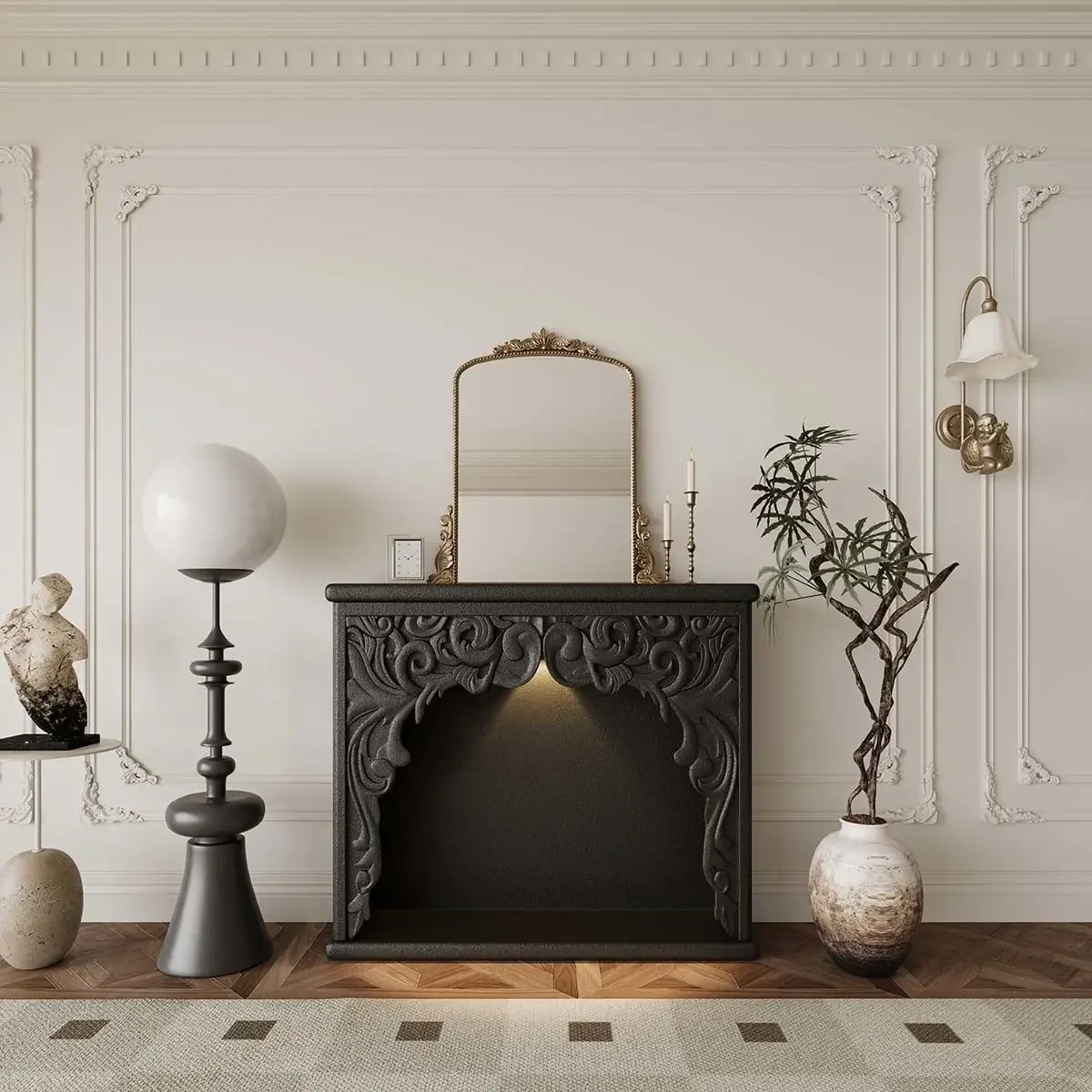 This beautifully crafted French cream fireplace cabinet is more than just a piece of furniture—it’s a statement of style and sophistication. Expertly designed for your living room or entryway, this cabinet features elegant carved detailing and a classic fireplace motif, giving your home a warm, refined ambiance. The light-emitting storage compartments not only highlight your treasured decor items but also bring a cozy glow to any space, making it an inviting centerpiece for gatherings or quiet evenings at home.