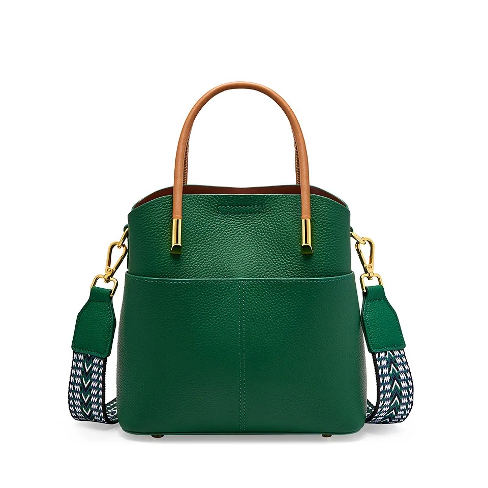 Elegant Genuine Cow Leather Bucket Tote Bag – Versatile Shoulder and Handbag