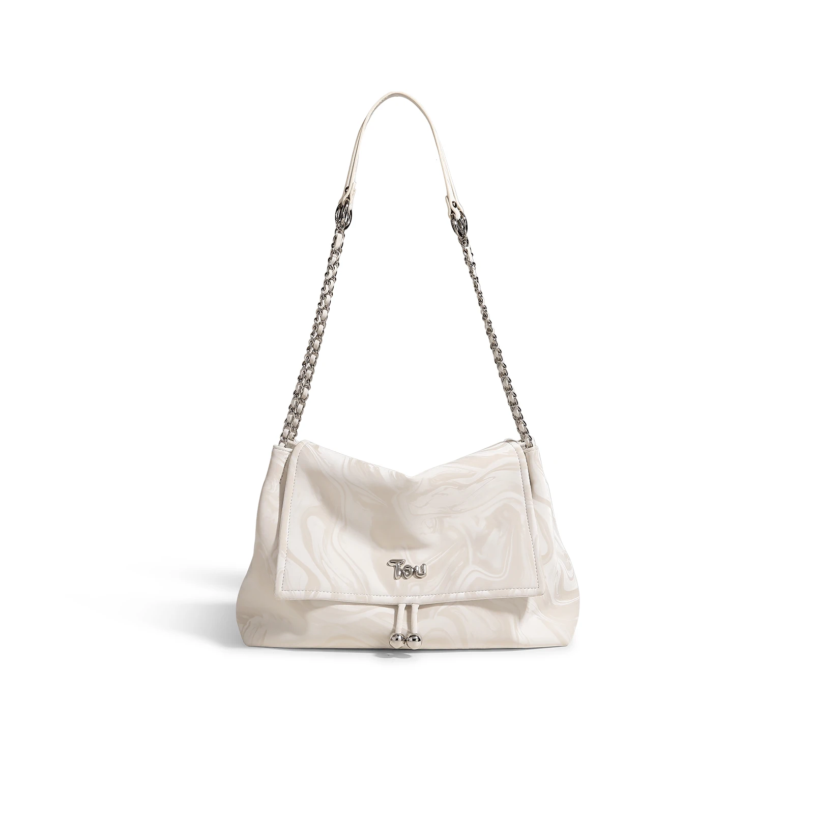 Crafted from premium PU leather, this bag offers durability without compromising on style. The soft material is lightweight and comfortable to carry, while the synthetic leather lining adds an extra layer of quality. Its open closure design makes accessing your essentials easy, while the single strap and chain detailing create a fashionable statement. The structured, square shape ensures it holds all your daily necessities with ease.