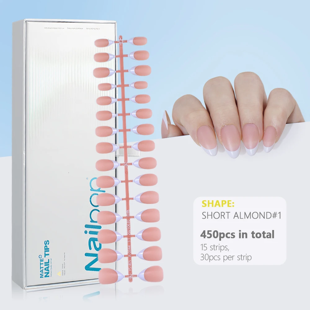 Introducing the ultimate solution for beautiful nails in no time! Our 450PCS French Tip Press-On Nails feature pre-colored soft gel tips designed to give you stunning, salon-quality nails right at home. With a perfect almond shape and a range of designs, these nails make it easy to express your style without the hassle of traditional nail art. Get ready to elevate your nail game!