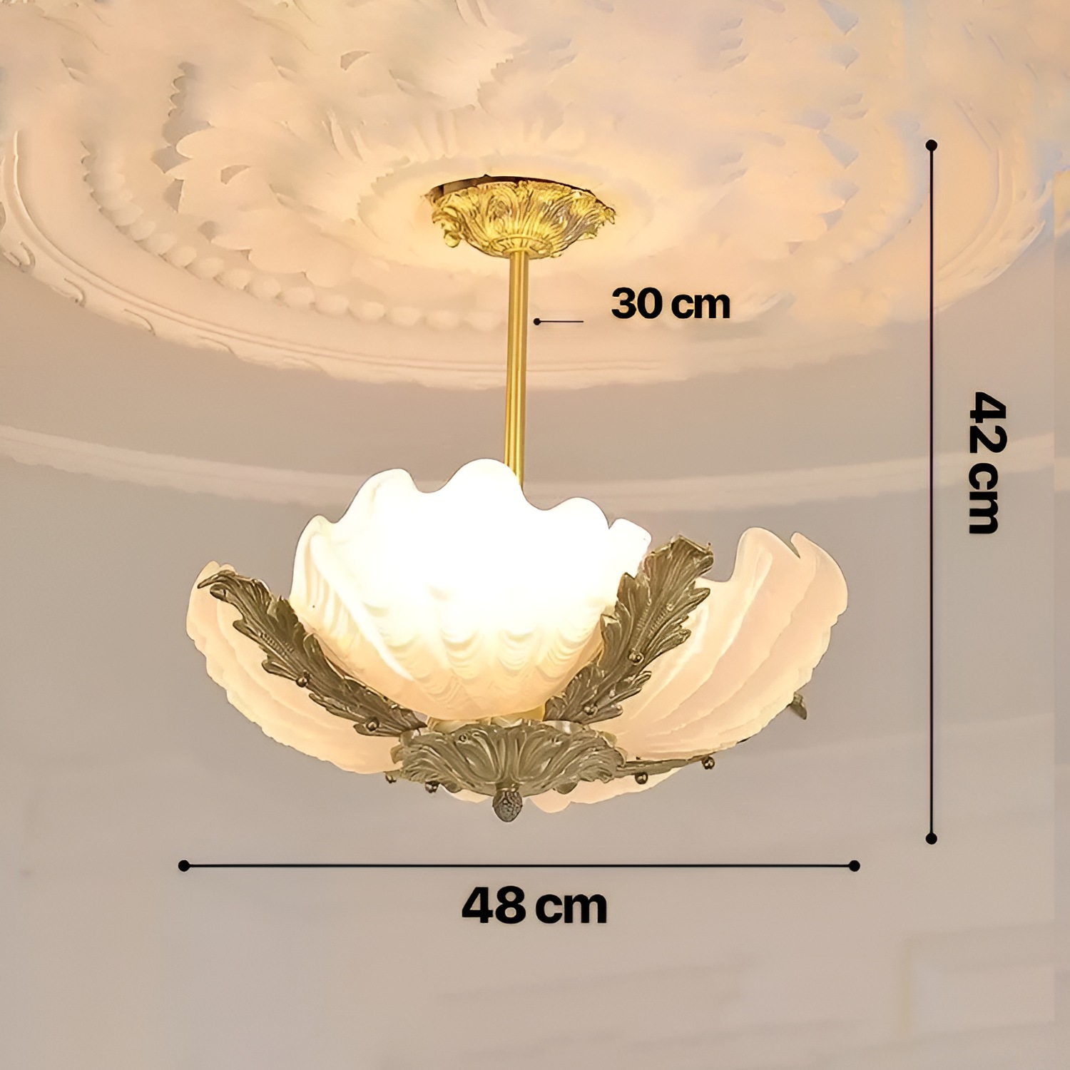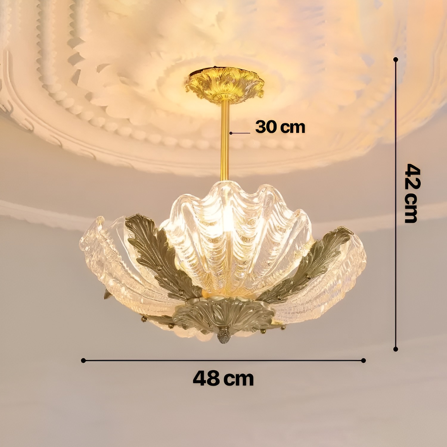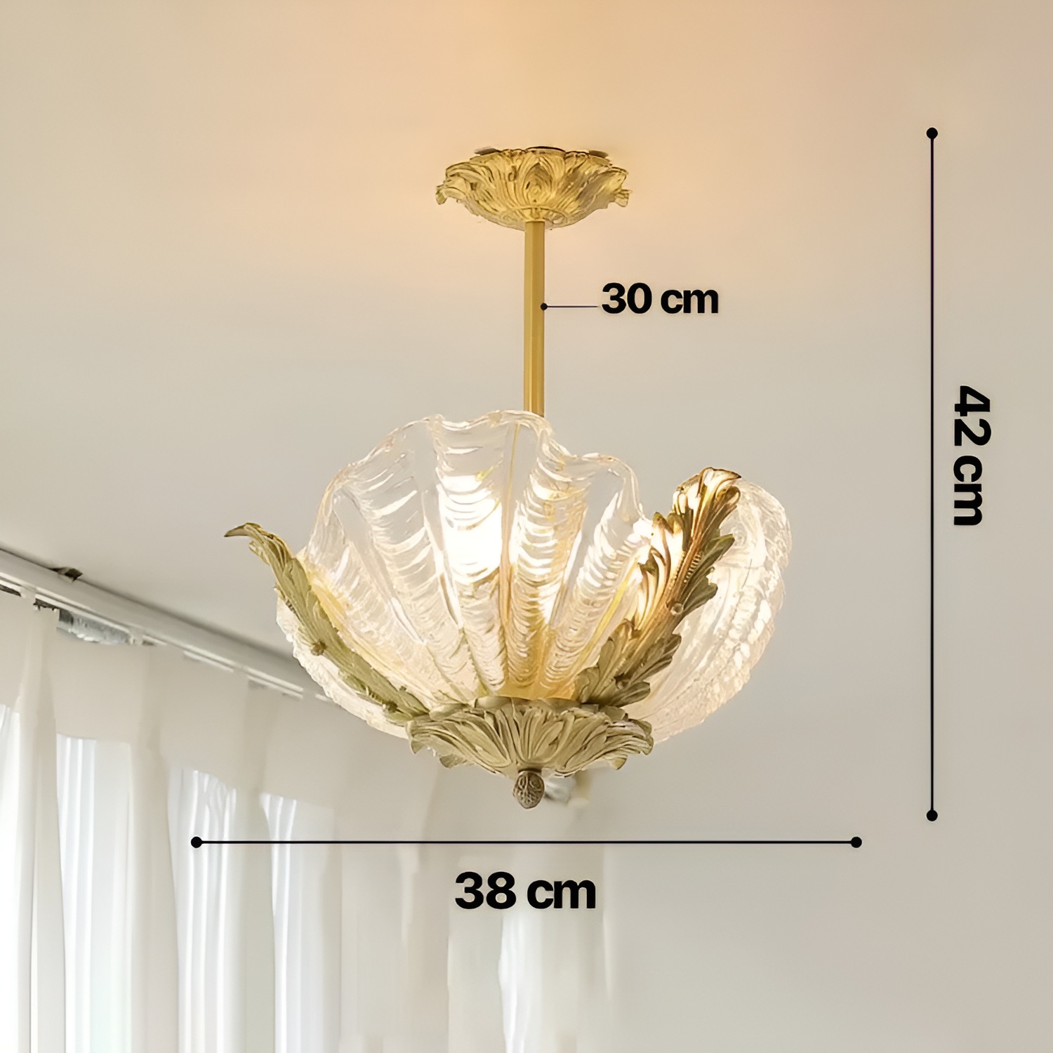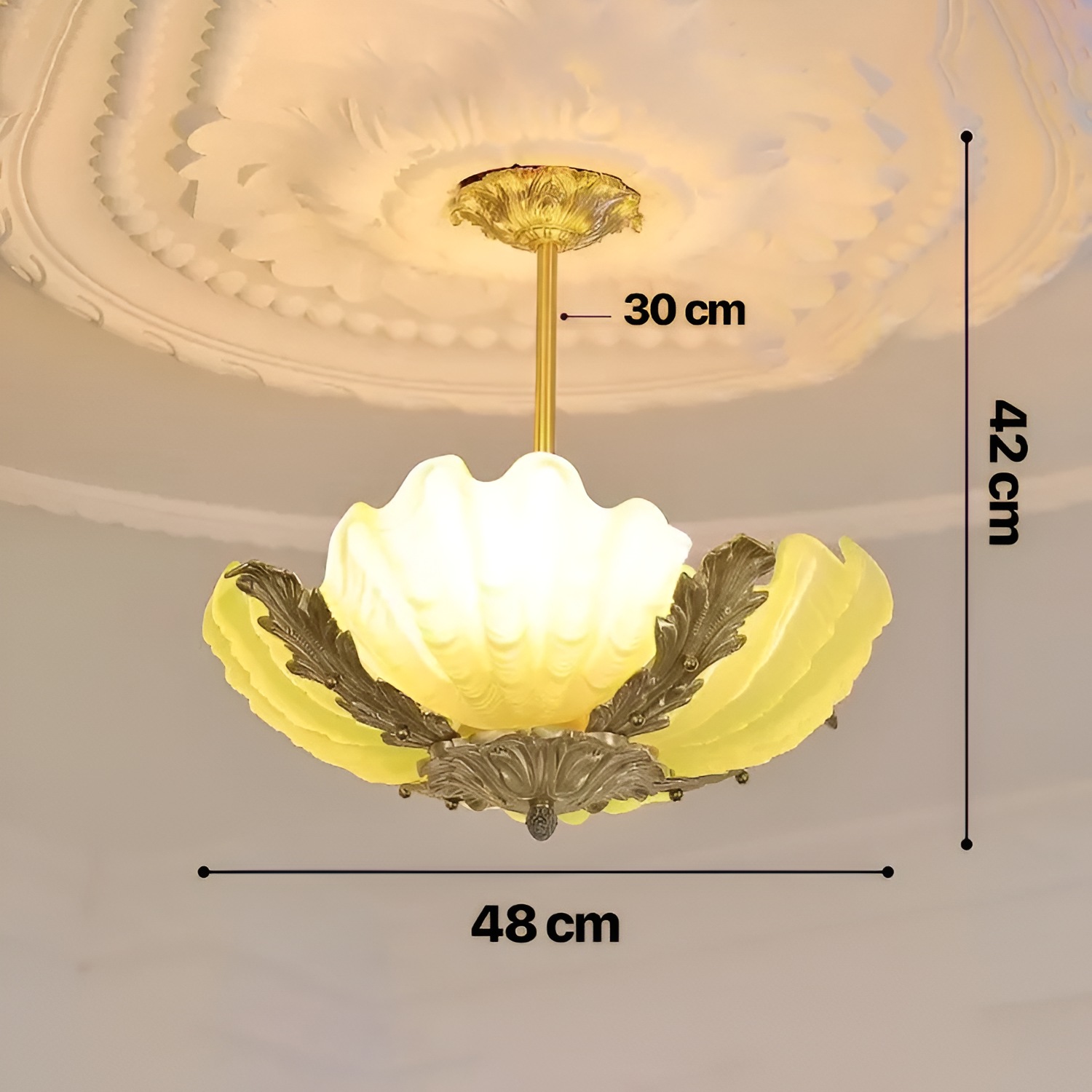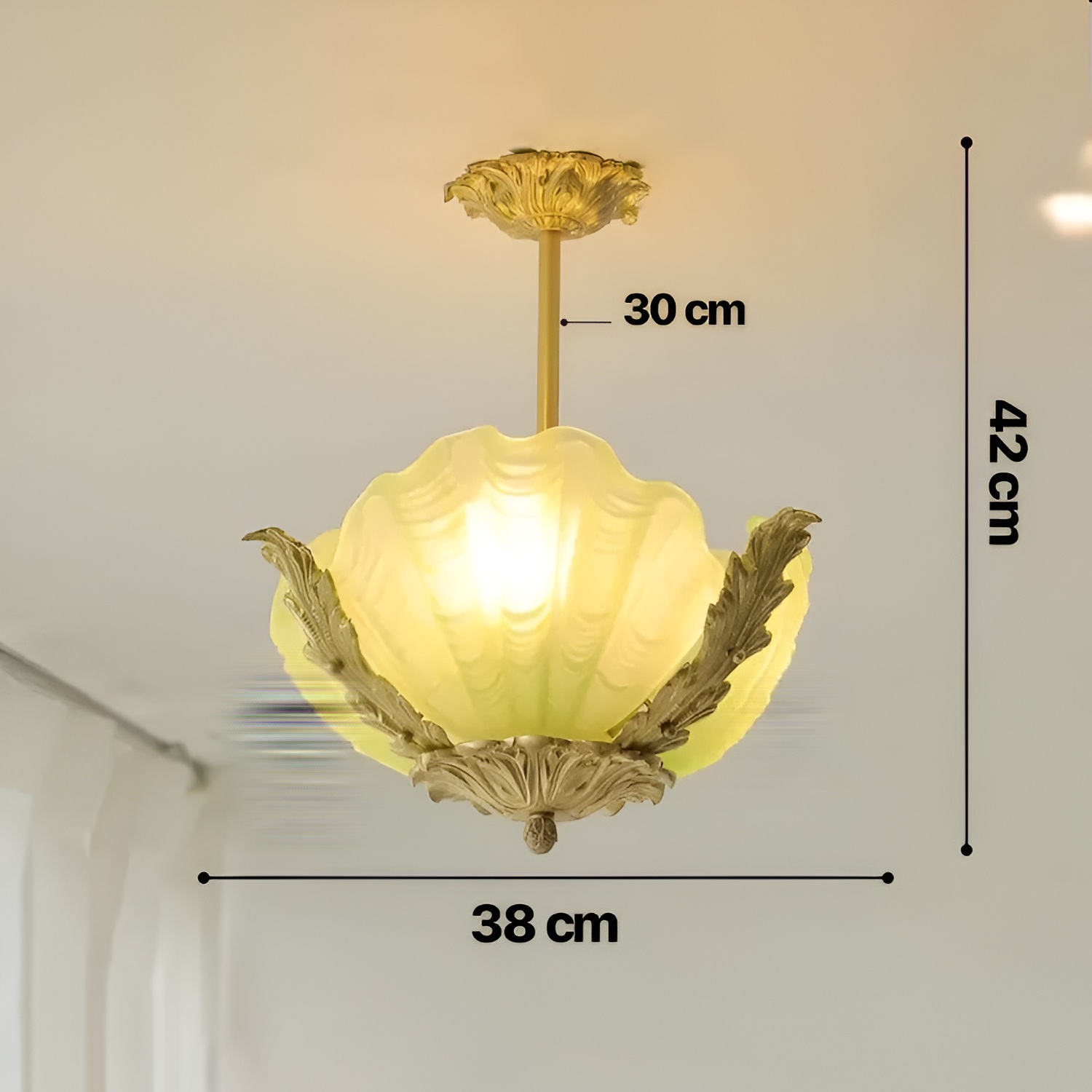 Crafted with precision and elegance, this chandelier combines high-quality shell glass with gentle hues, bringing warmth and ambiance to your space. The chandelier is designed to reflect light beautifully, casting a subtle glow that’s perfect for creating a cozy yet luxurious atmosphere. Each element, from the delicately rounded glass shells to the chandelier’s retro finish, has been meticulously crafted, making this light fixture not only a source of illumination but also a statement piece that showcases refined taste.
