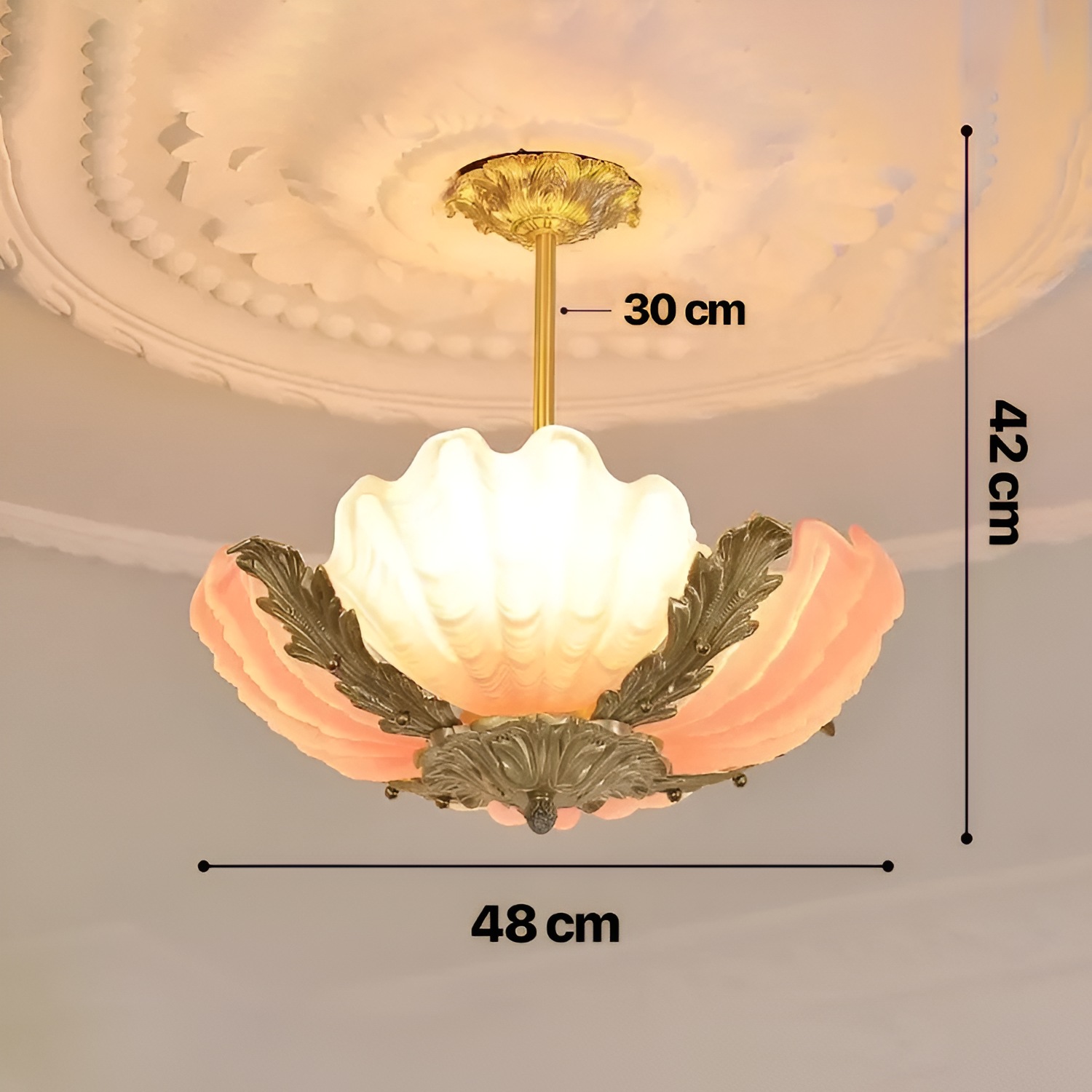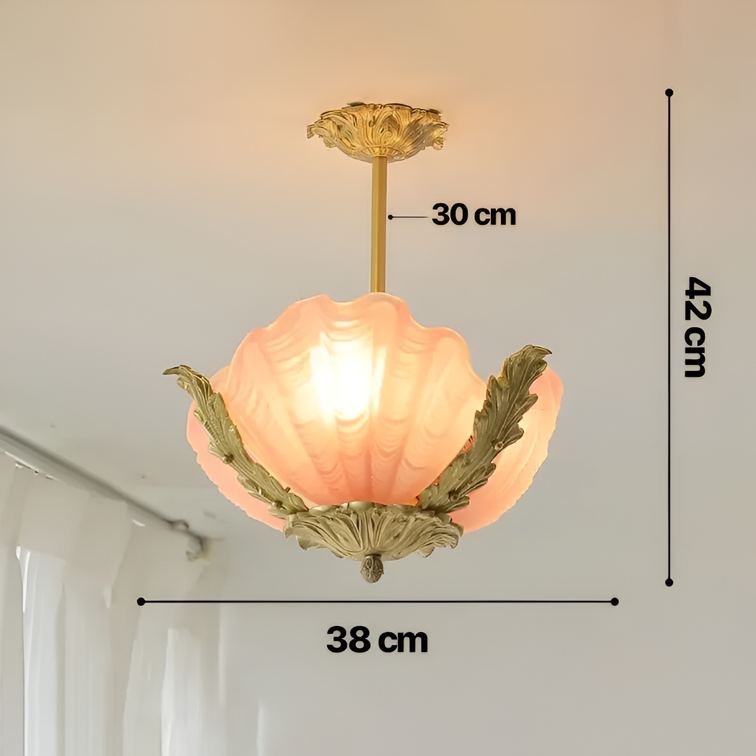 Don’t settle for ordinary lighting when you can elevate your decor with this luxurious chandelier. Embrace the charm and elegance of French retro style, and let your space shine with sophistication. Illuminate your room with warmth and character by choosing this Pink Shell Glass Chandelier today. It’s not just lighting; it’s the perfect finishing touch to a beautifully designed room.