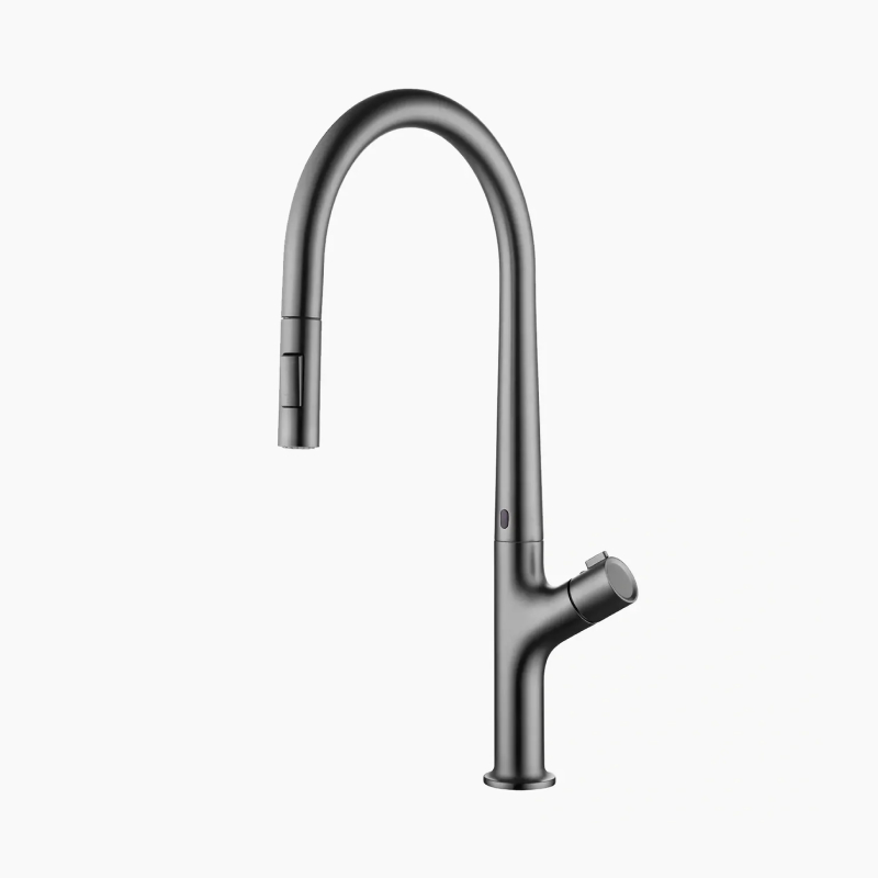 Gun Gray Brass Kitchen Faucet with Dual Control and Induction Design