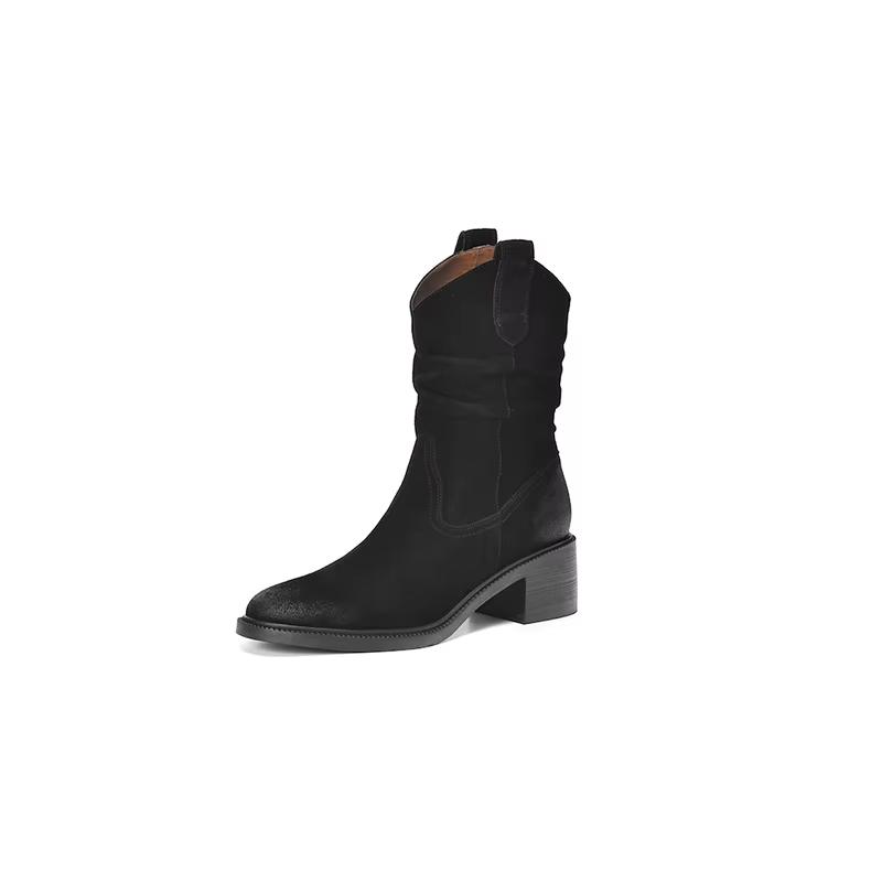 These cow suede leather cowboy boots are more than just a fashion statement—they’re built for comfort and durability. The short plush lining provides warmth during cold winter days, while the sturdy rubber outsole ensures you can confidently walk on any surface. The thick sole and 5 cm square heel give you a boost without sacrificing comfort, making these boots perfect for all-day wear. Whether you’re out running errands or enjoying a night out, these boots are versatile enough to fit any occasion.