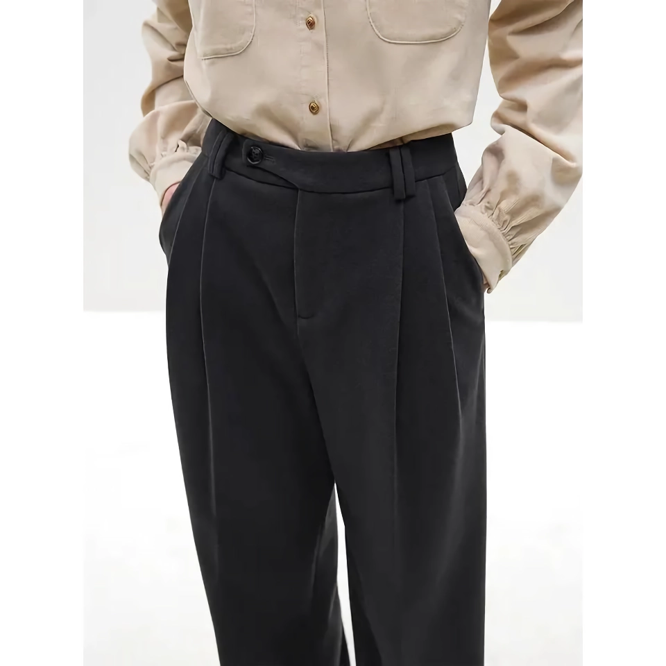 High Waist Beige Wide Leg Trousers – Classic Pleated Office Pants