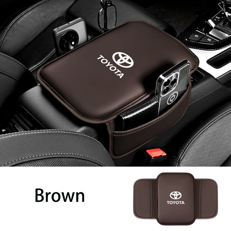 Leather Armrest Box Pad with Storage Pocket for Toyota Camry, Corolla, and RAV4