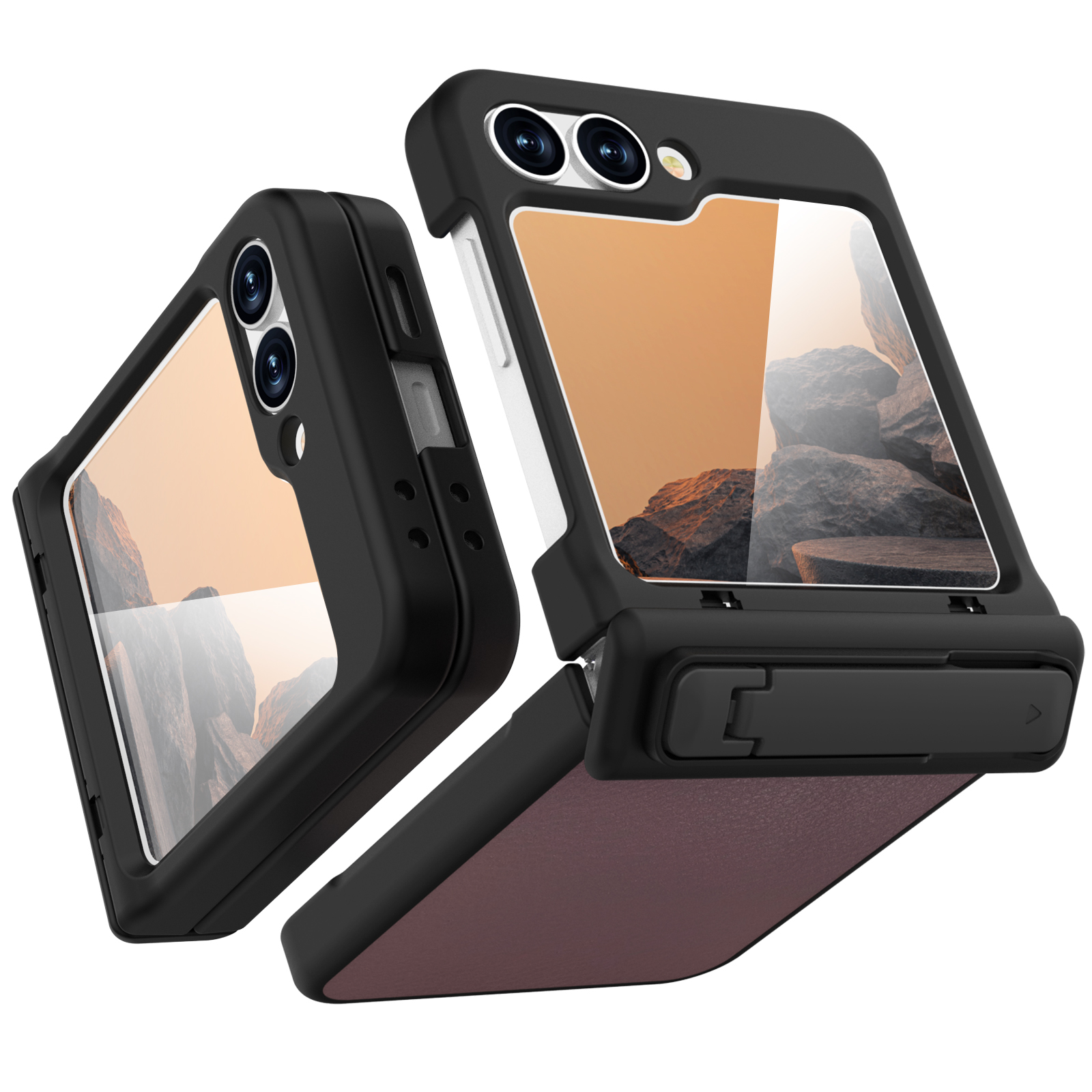 Leather Case for Samsung Galaxy Z Flip 6 with Kickstand Protection
