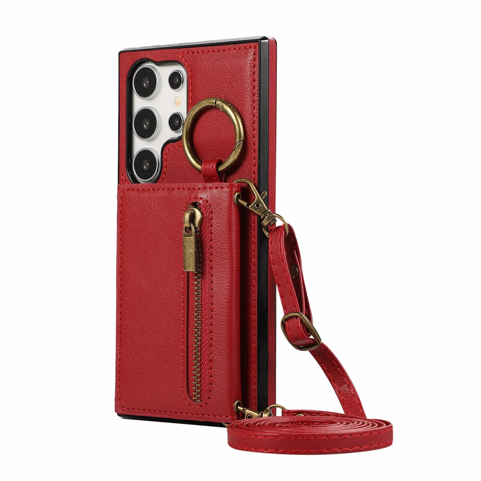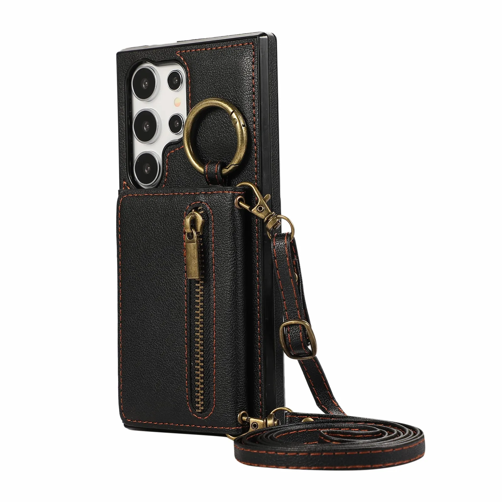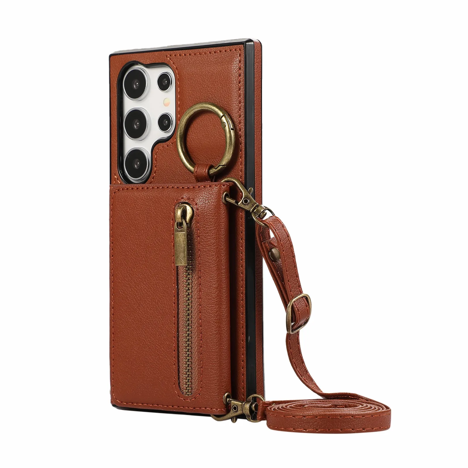 Leather Crossbody Wallet Case with Card Holder & Ring for Samsung Galaxy