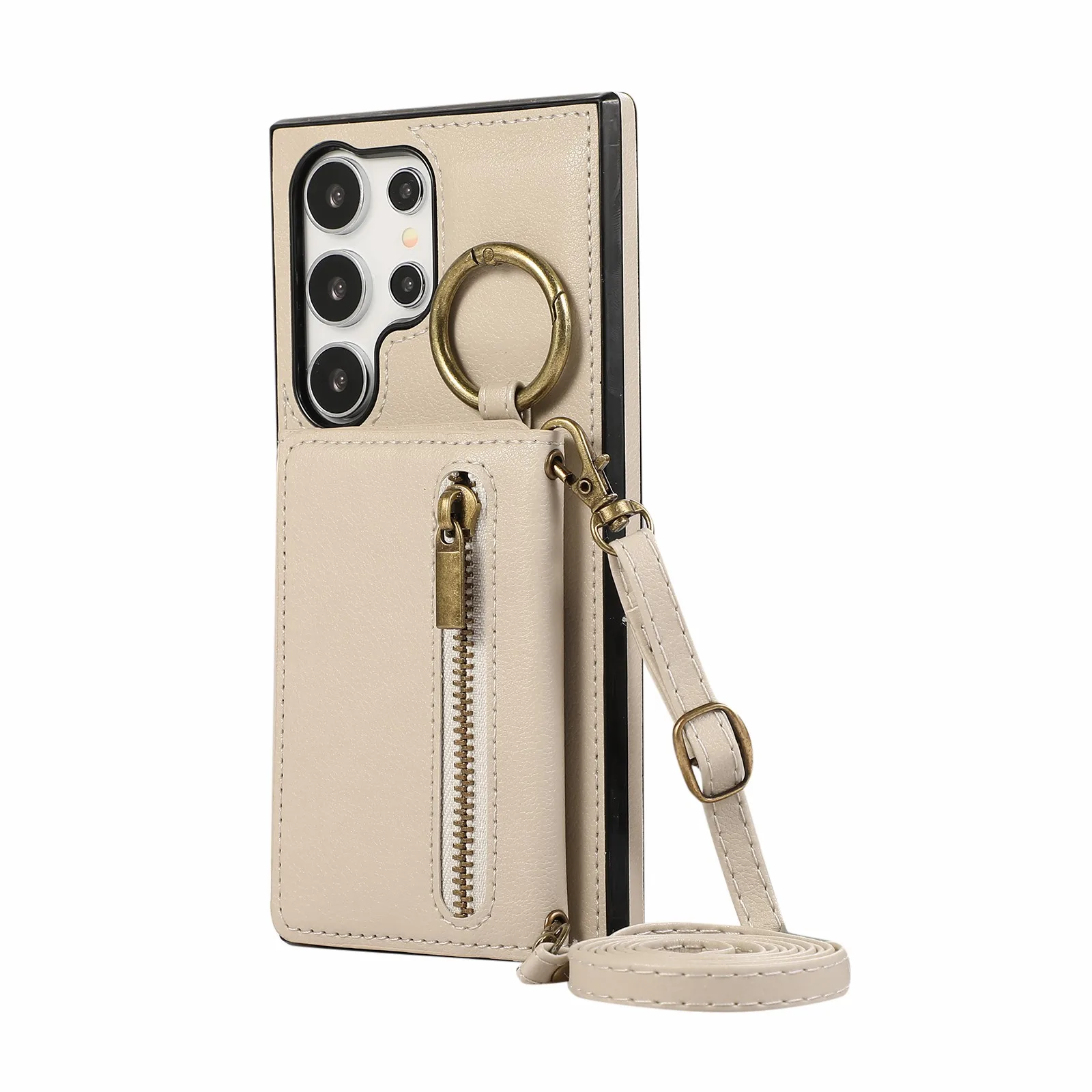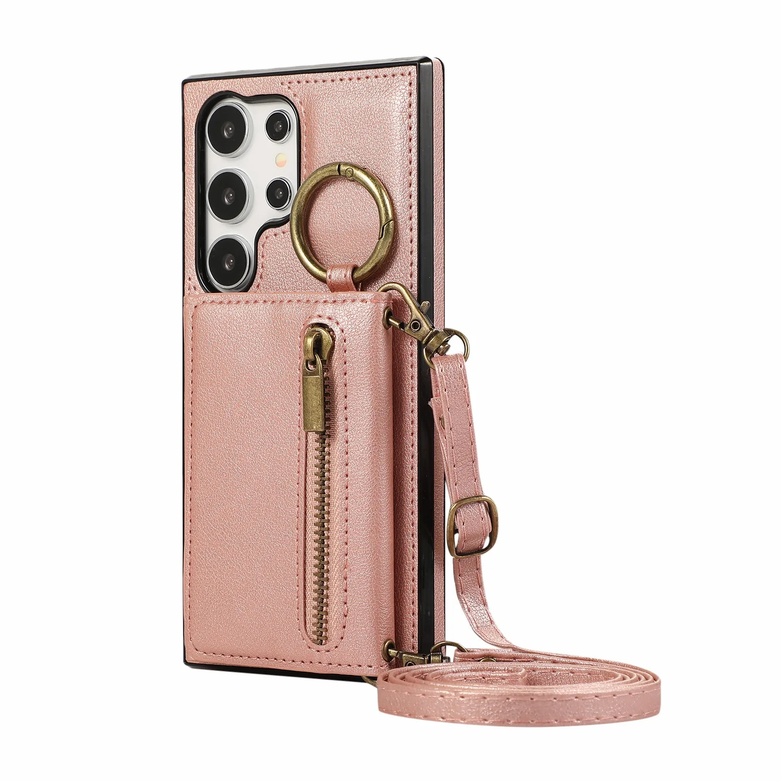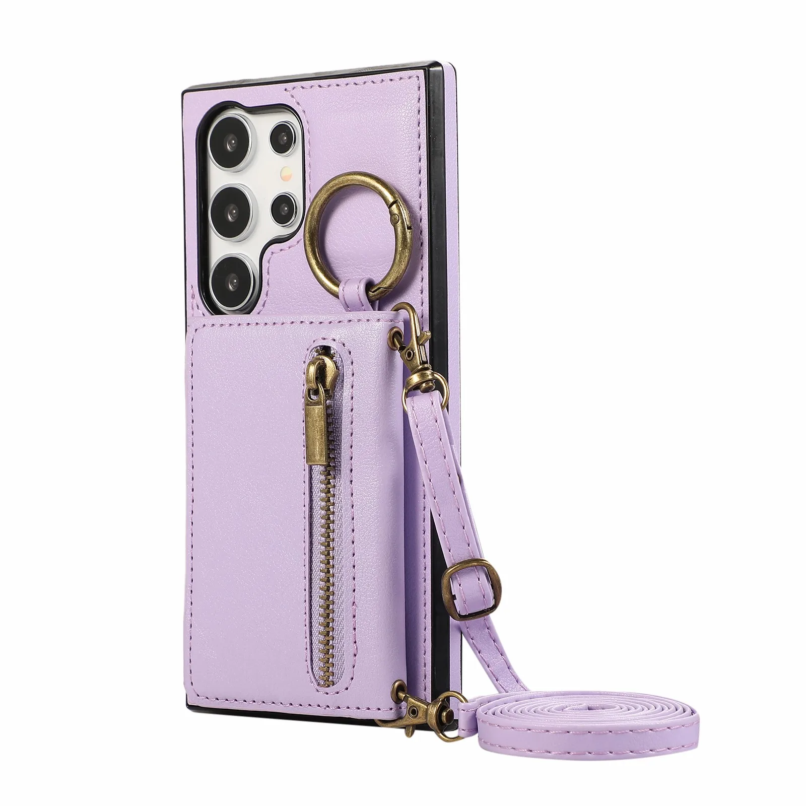 Leather Crossbody Wallet Case with Card Holder & Ring for Samsung Galaxy